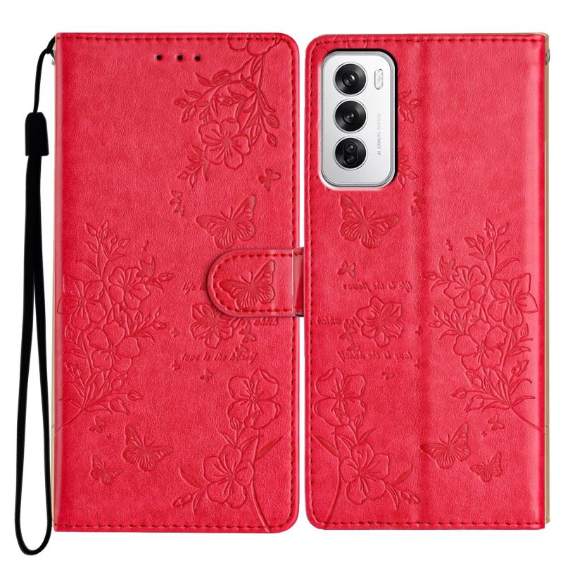 For OPPO Reno12 5G Global Butterflies and Flowers Leather Phone Case(Red)