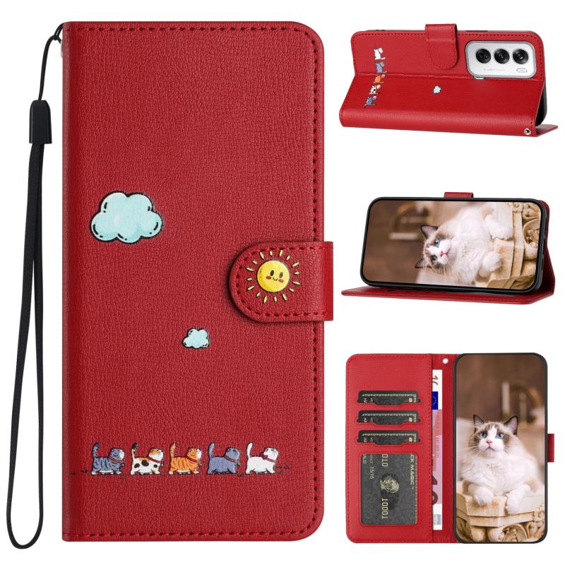 For OPPO Reno12 5G Global Cartoon Cats Leather Phone Case(Red)