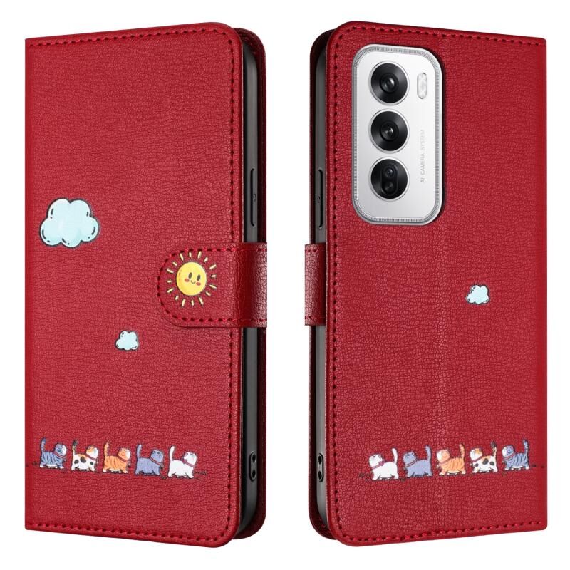 Θήκη τηλεφώνου από δέρμα με σχέδια κινούμενων σχεδίων για OPPO Reno12 5G (Κόκκινο)