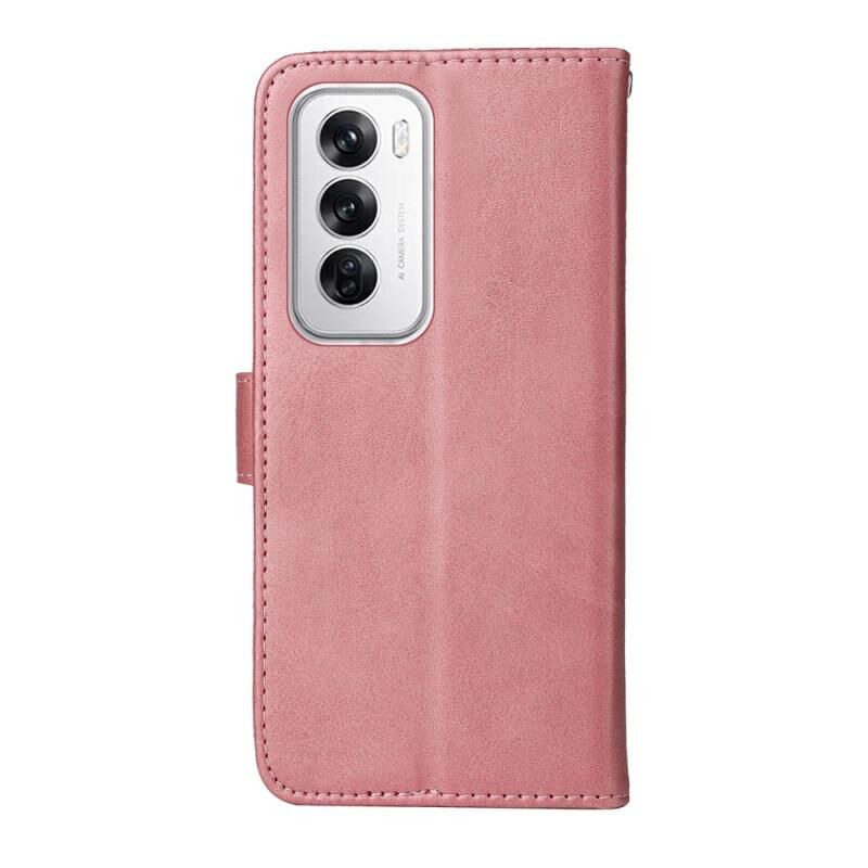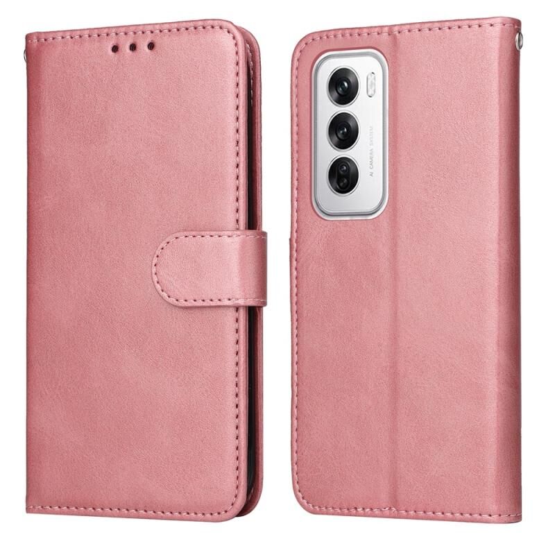 Για OPPO Reno12 5G Global Classic Calf υφή Flip δέρμα τηλέφωνο υπόθεση (Ροζ χρυσός)