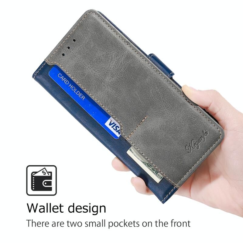 Για OPPO Reno12 5G Παγκόσμια αντίθεση χρώμα πλευρά πόρπη δερμάτινη θήκη τηλεφώνου (μπλε + γκρι)