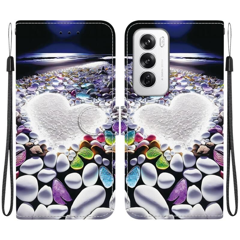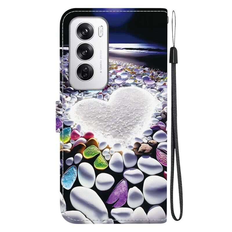 Θήκη τηλεφώνου από δέρμα με χρωματιστή σχεδίαση κρυστάλλινης υφής για OPPO Reno12 5G (Σχήμα καρδιάς)