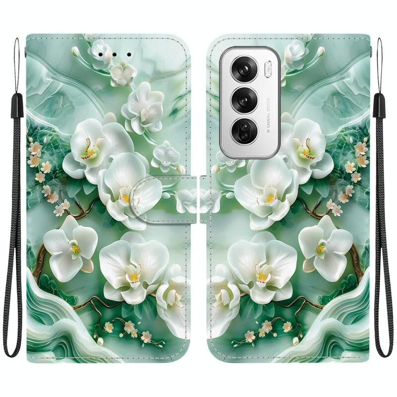 Θήκη τηλεφώνου από δέρμα με χρωματιστή σχεδίαση κρυστάλλινης υφής για OPPO Reno12 5G (Λουλούδια νεφρίτη)