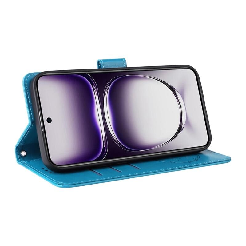 Θήκη τηλεφώνου από δέρμα με ανάγλυφα λουλούδια και πεταλούδες για OPPO Reno12 5G Global (Μωβ)