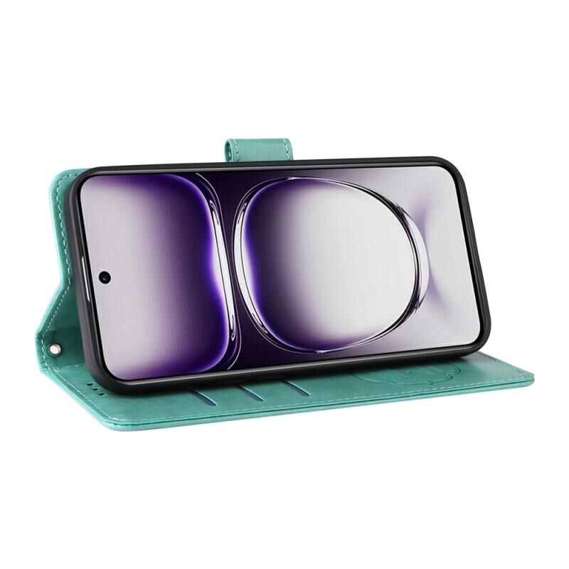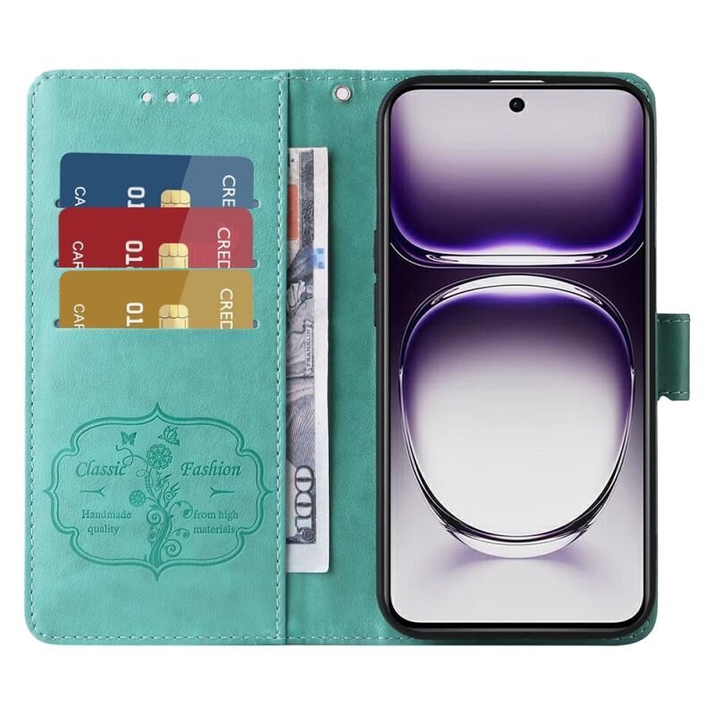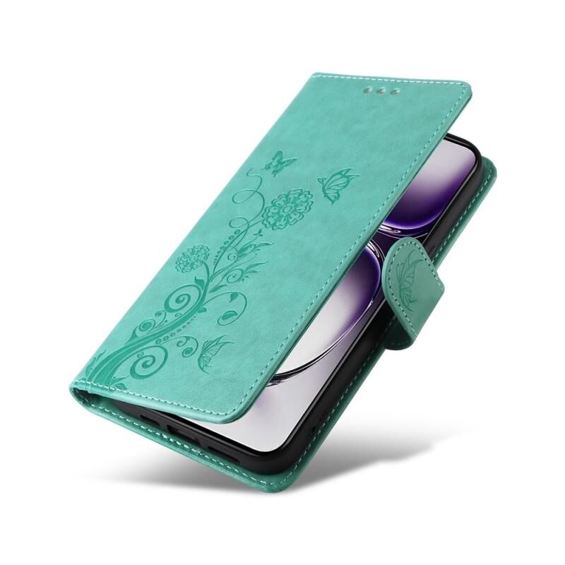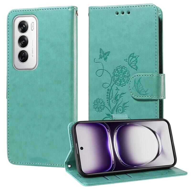 Θήκη τηλεφώνου από δέρμα με ανάγλυφα λουλούδια και πεταλούδες για OPPO Reno12 5G Global (Μωβ)