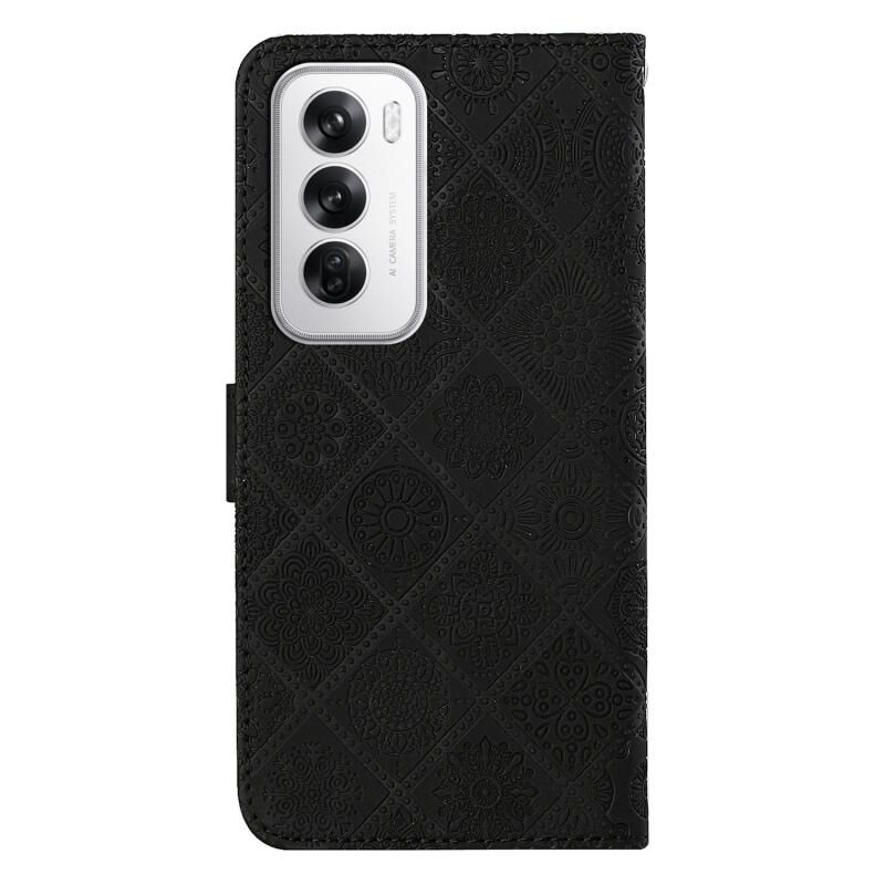 Θήκη τηλεφώνου από δέρμα με ανάγλυφο σχέδιο εθνικού στυλ για OPPO Reno12 5G (Καφέ)