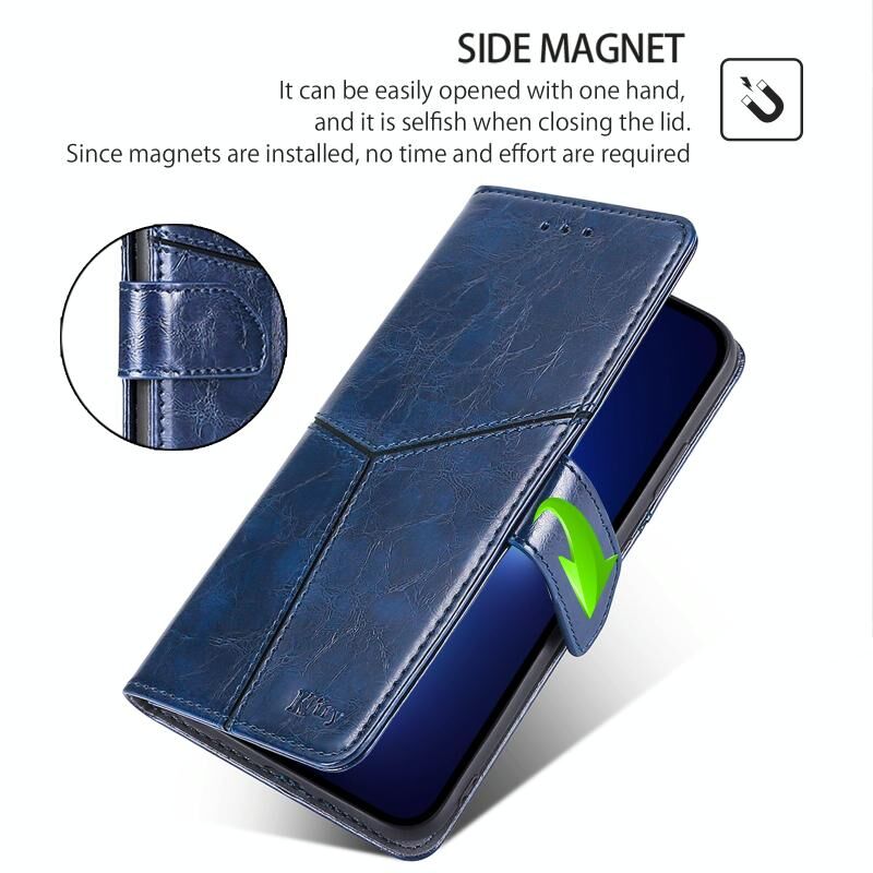 Για OPPO Reno12 5G Παγκόσμια γεωμετρική ραφή δερμάτινη θήκη τηλεφώνου (μπλε)