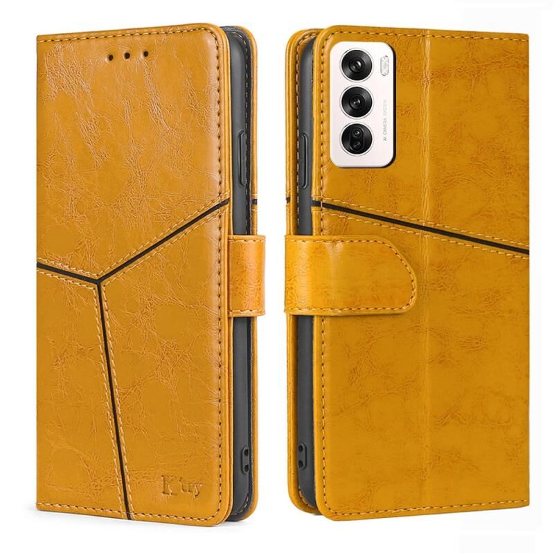 Για OPPO Reno12 5G Παγκόσμια γεωμετρική ραφή δερμάτινη θήκη τηλεφώνου (κίτρινο)