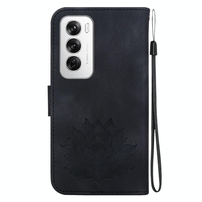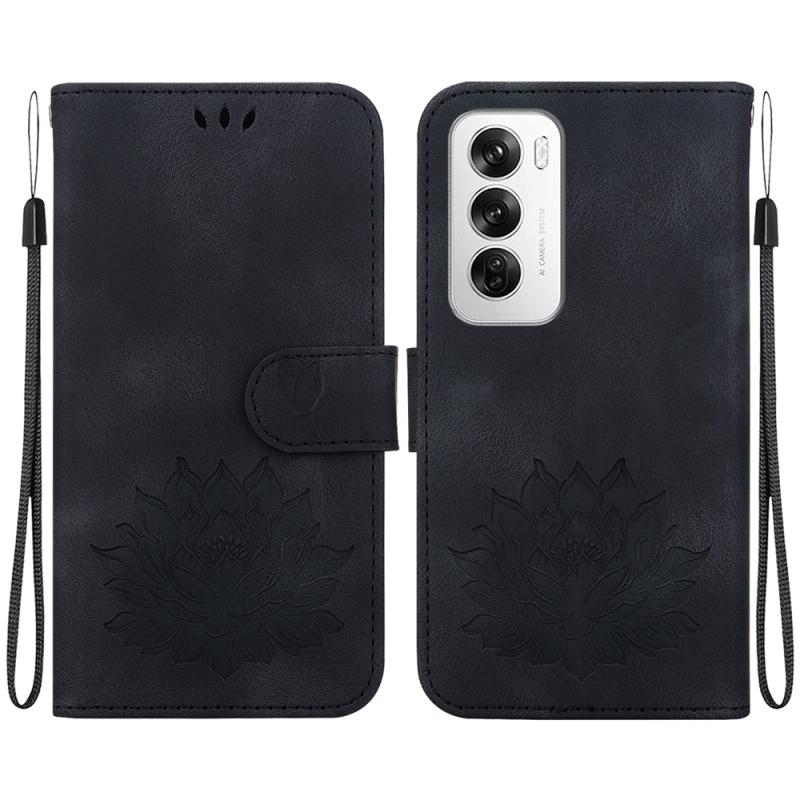 For OPPO Reno12 5G Global Lotus Embossed Leather Phone Case(Black)