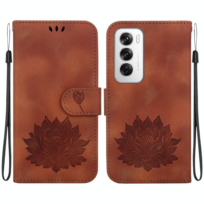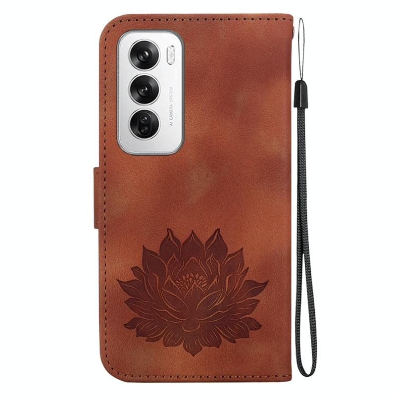 For OPPO Reno12 5G Global Lotus Embossed Leather Phone Case(Brown)