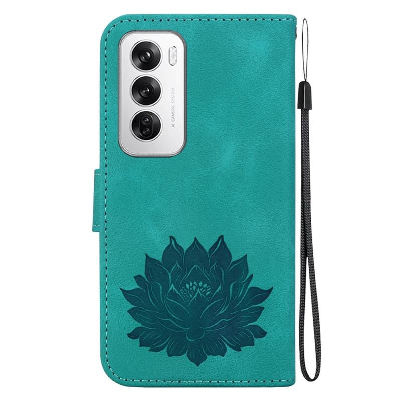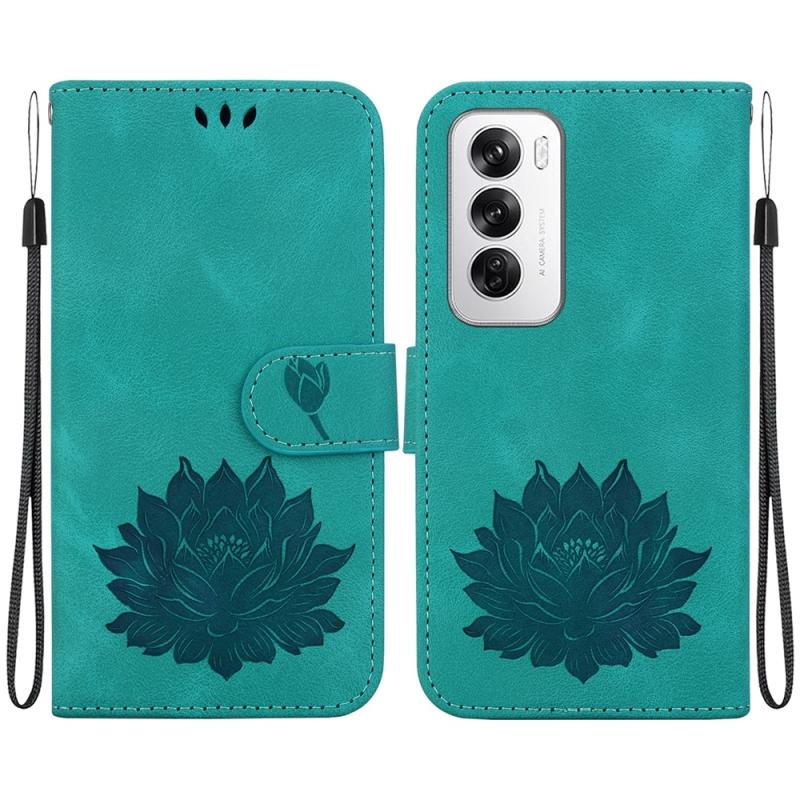 For OPPO Reno12 5G Global Lotus Embossed Leather Phone Case(Green)