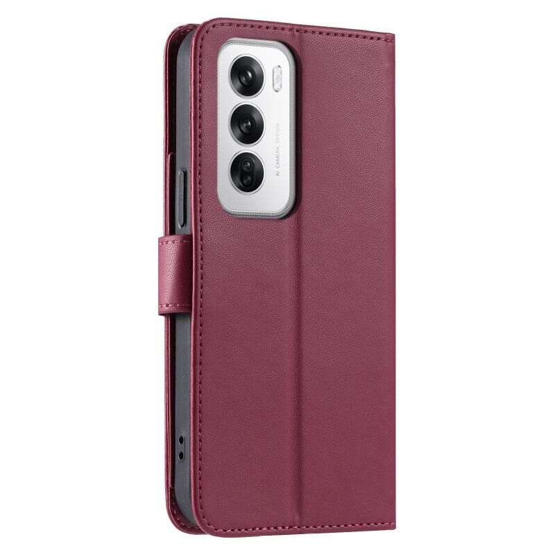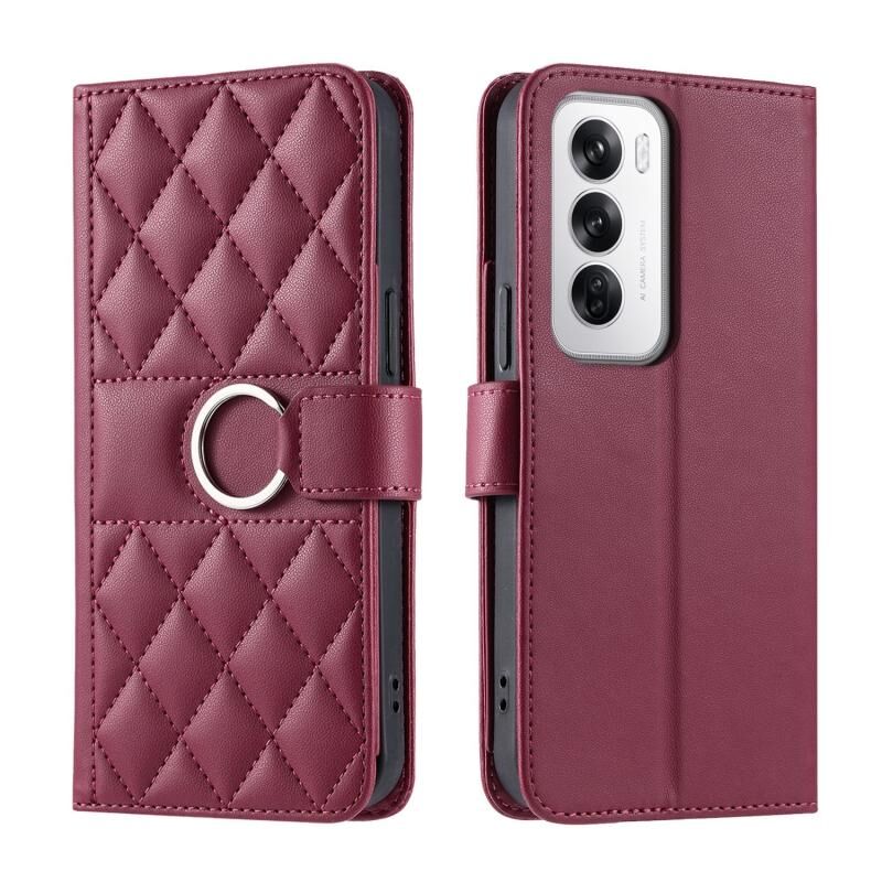 Θήκη τηλεφώνου από δέρμα με γεωμετρικό σχέδιο και μεταλλικό δακτύλιο για OPPO Reno12 5G (Κόκκινο)