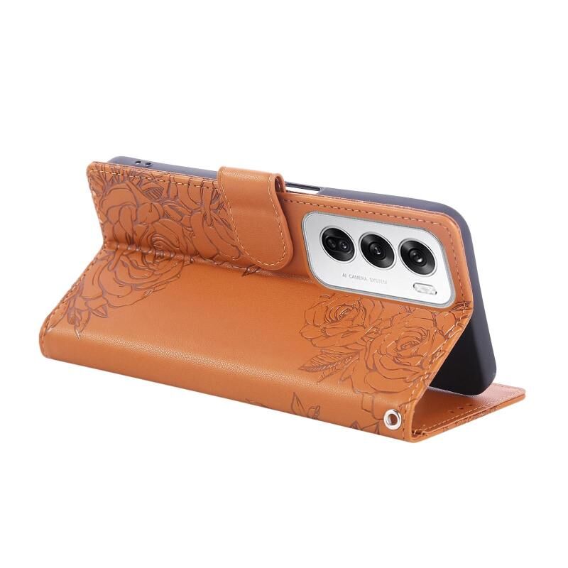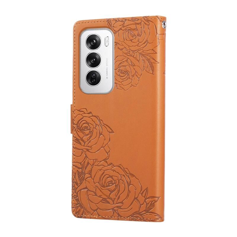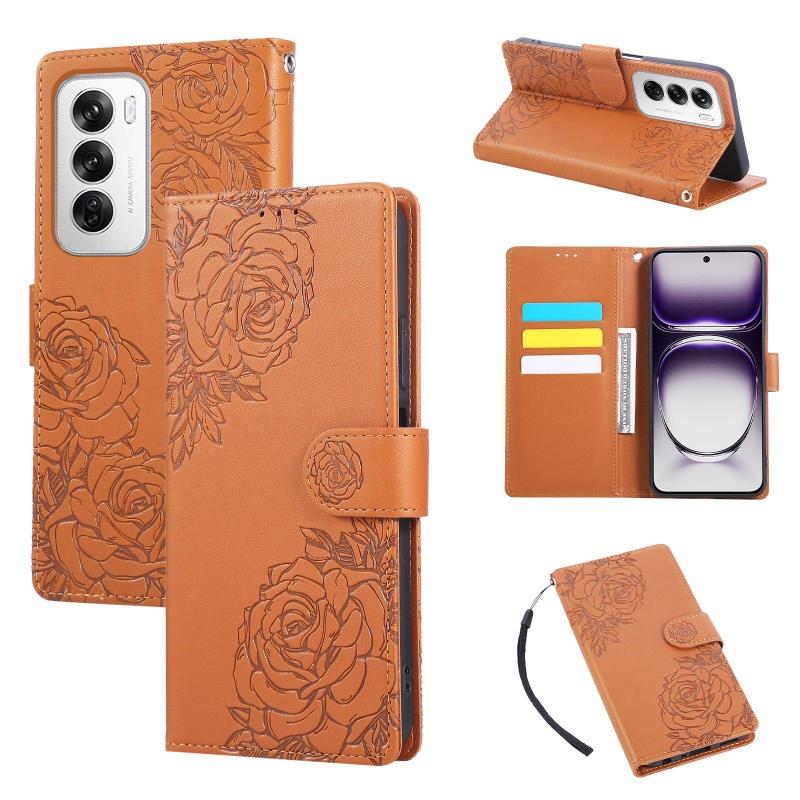 For OPPO Reno12 5G Global Rose Flower Embossed 3-Card Slots Leather Phone Case(Brown)