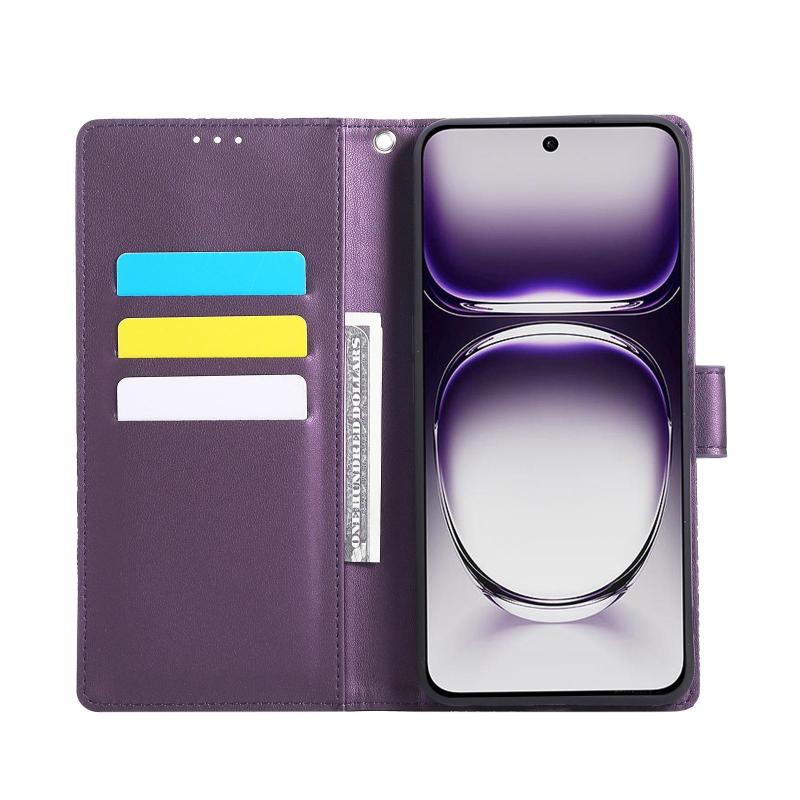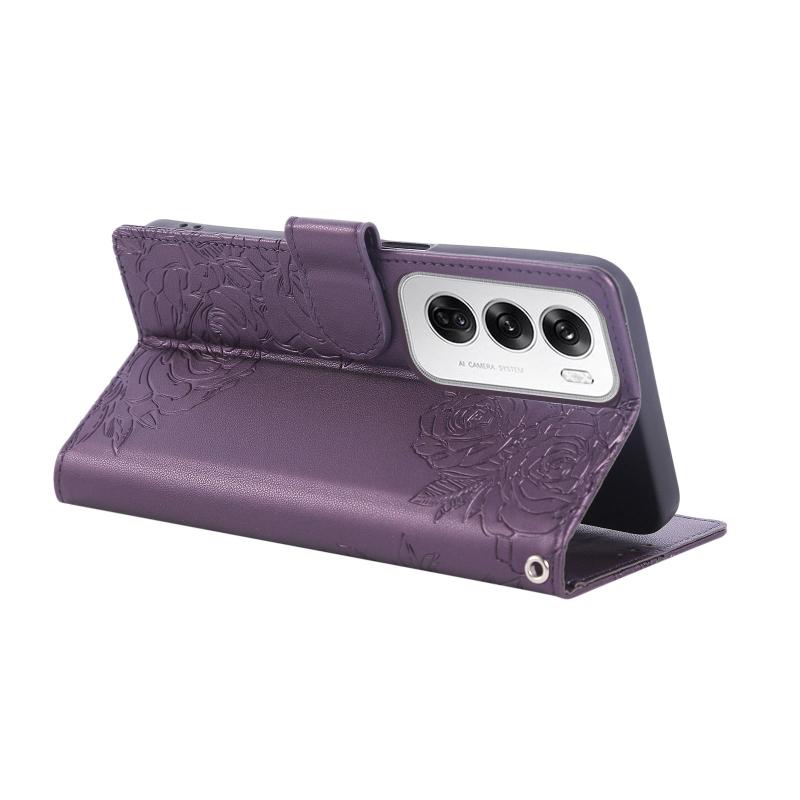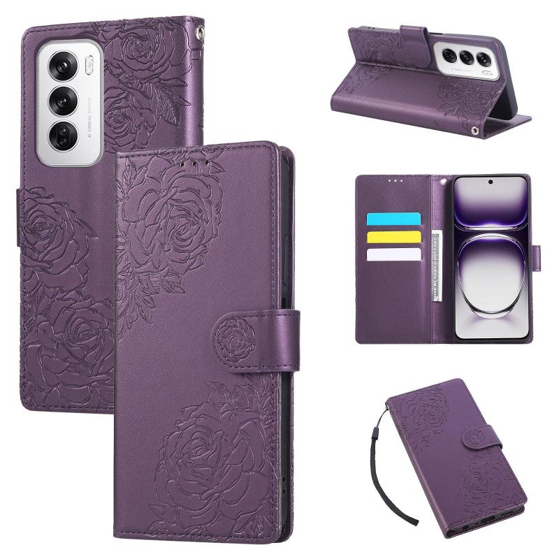 For OPPO Reno12 5G Global Rose Flower Embossed 3-Card Slots Leather Phone Case(Deep Purple)