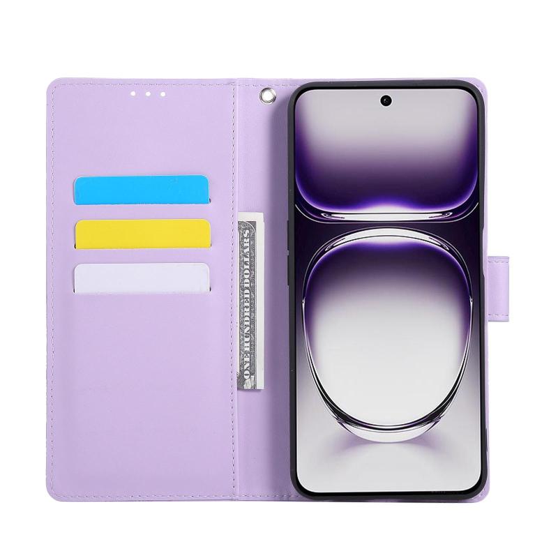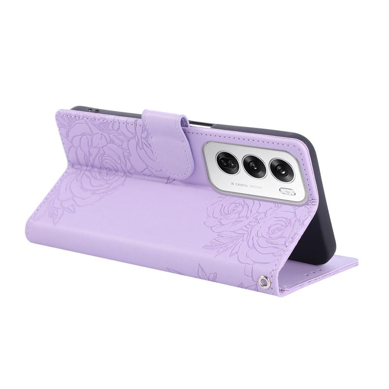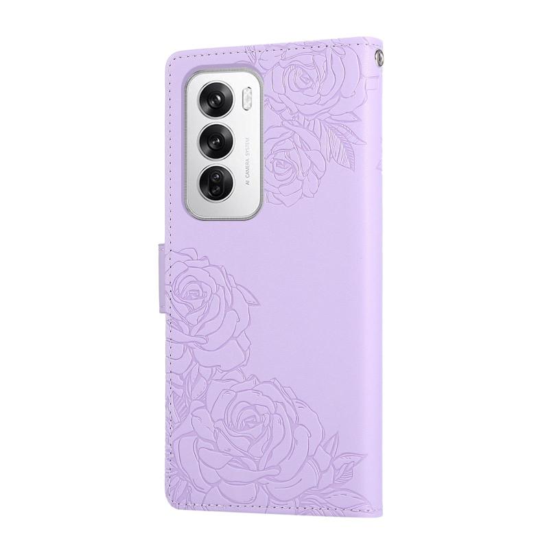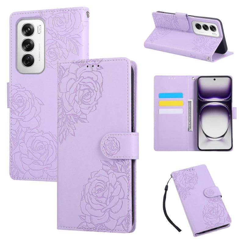 For OPPO Reno12 5G Global Rose Flower Embossed 3-Card Slots Leather Phone Case(Purple)