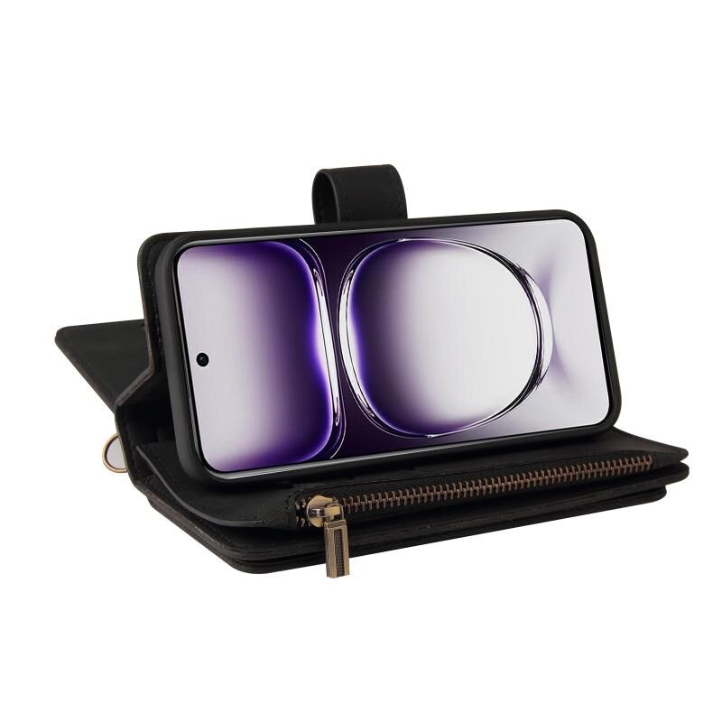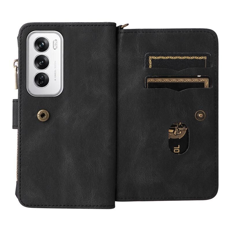 Για OPPO Reno12 5G Global Skin Feel Multi Card Slots φερμουάρ πορτοφόλι δερμάτινη θήκη τηλεφώνου (Μαύρο)