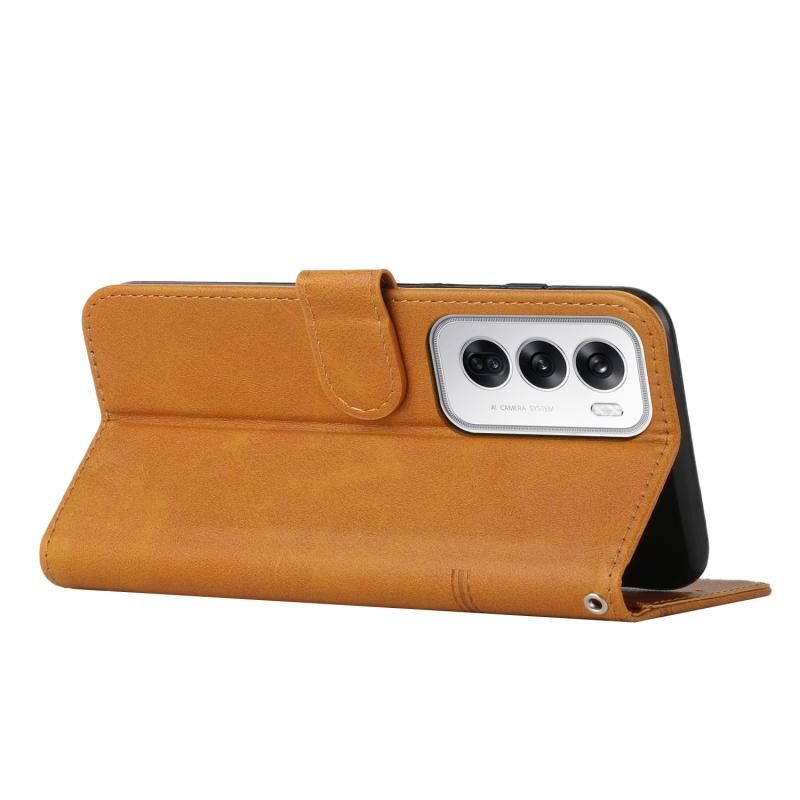 Θήκη τηλεφώνου από δέρμα με υφή μοσχαριού και αγκράφα για OPPO Reno12 5G (Κίτρινο)