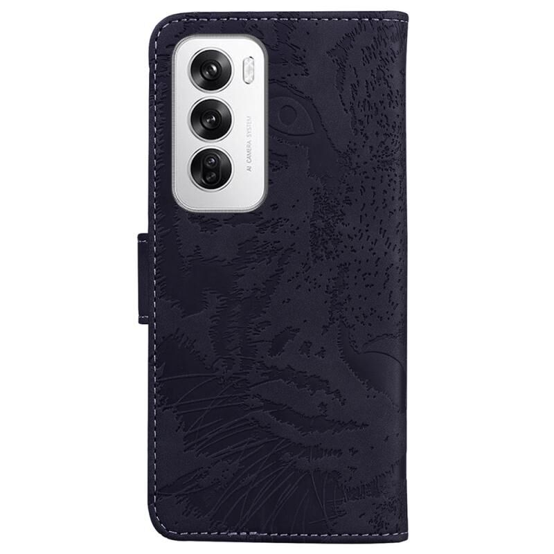 Θήκη τηλεφώνου από δέρμα με σχέδιο ανάγλυφου τίγρη για OPPO Reno12 5G (Μαύρο)