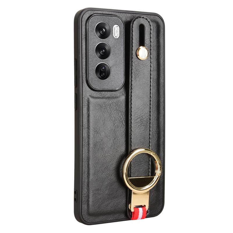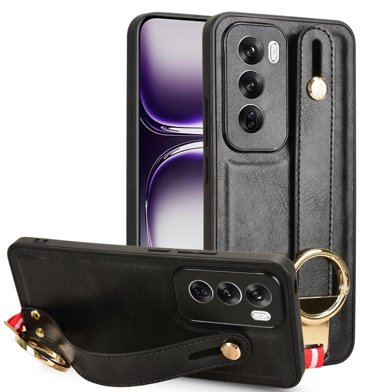For OPPO Reno12 5G Global Wristband Leather Back Phone Case(Black)