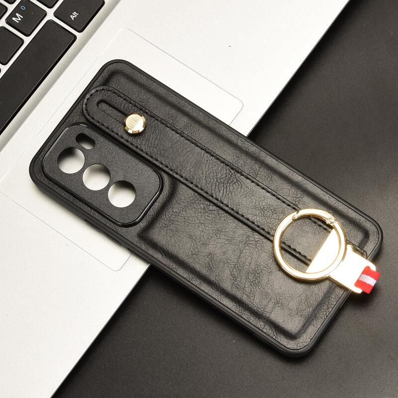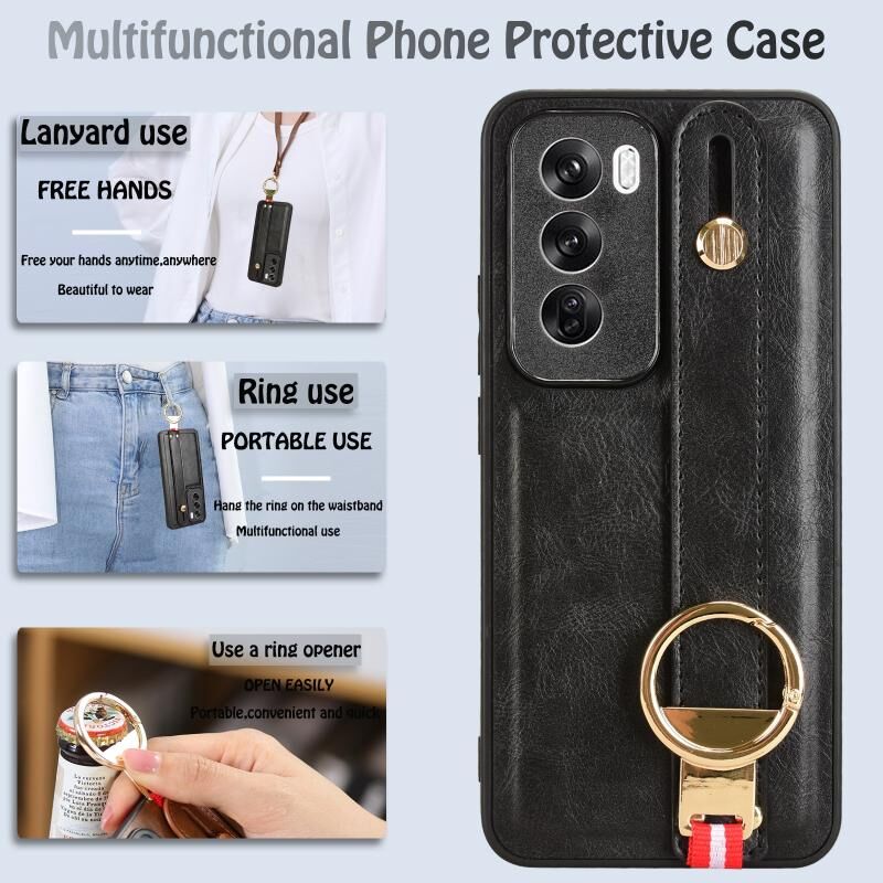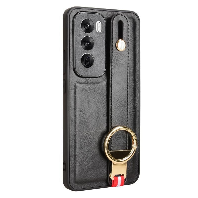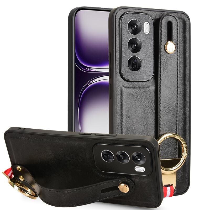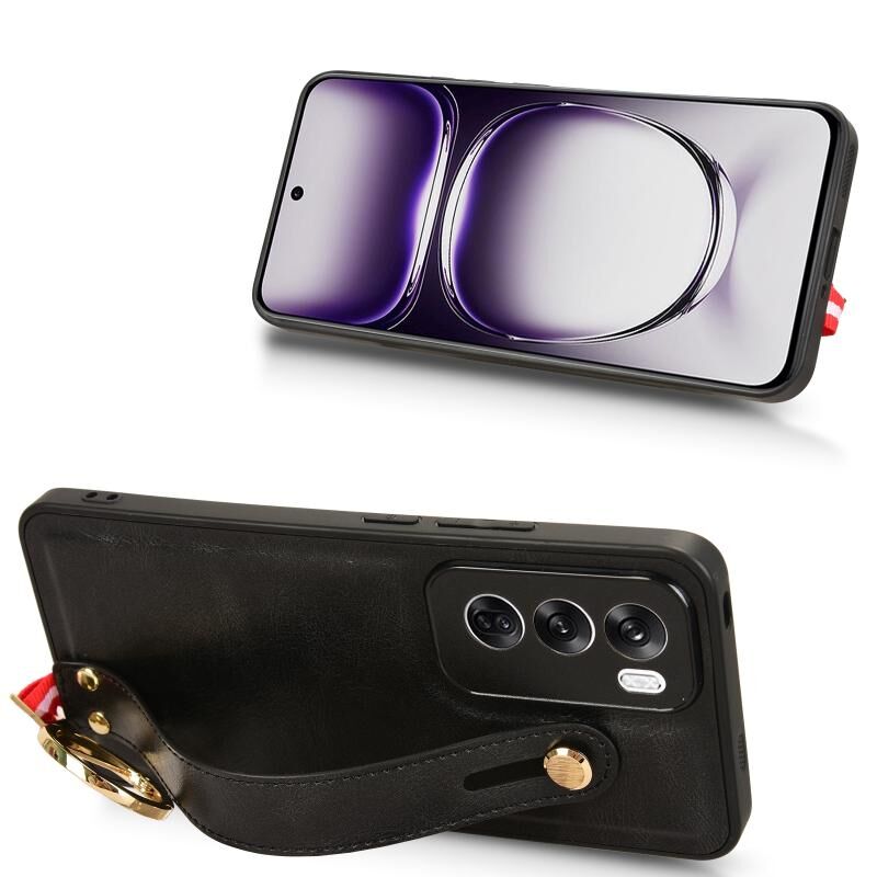 Θήκη τηλεφώνου από δέρμα για OPPO Reno12 5G Global με λουράκι καρπού (Μαύρο)