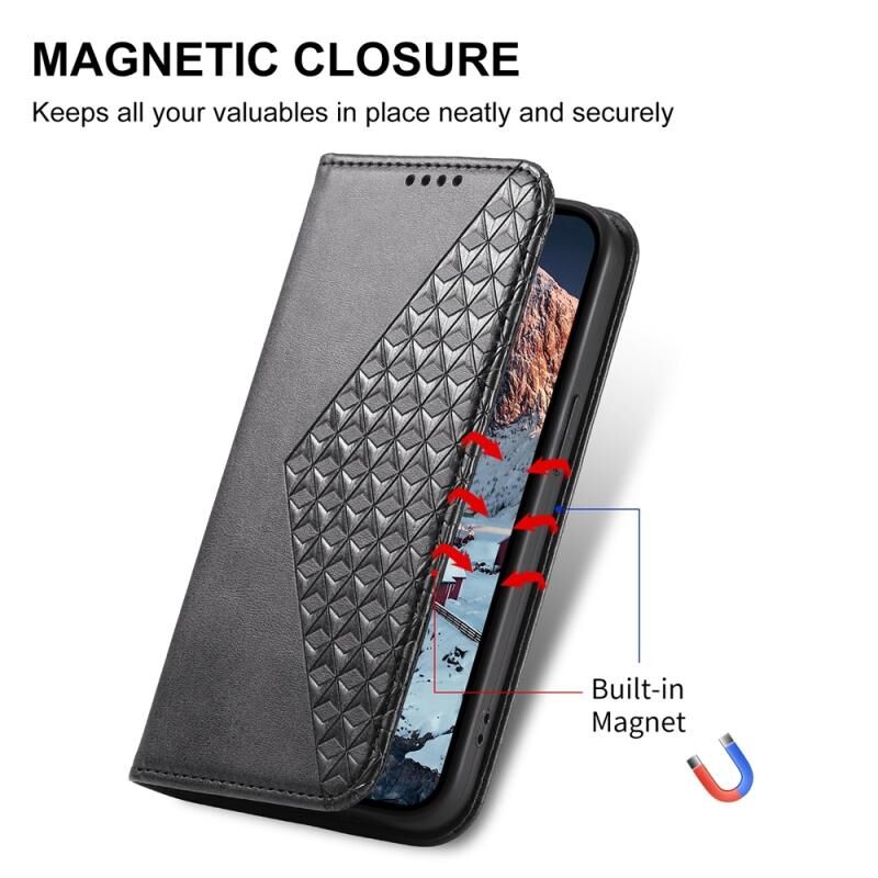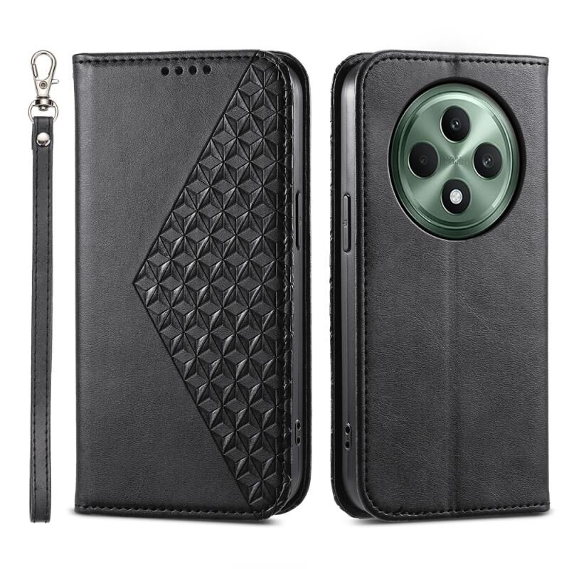 Για OPPO Reno12 F 4G / 5G / F27 Ινδία Cubic Grid Calf Texture μαγνητική δερμάτινη θήκη τηλεφώνου (Μαύρο)