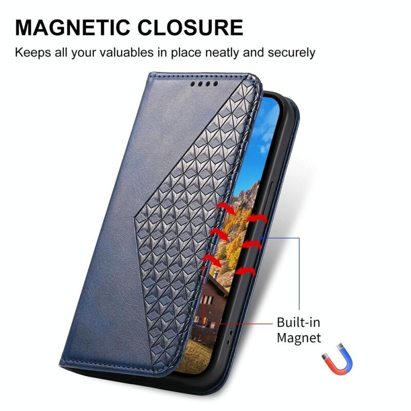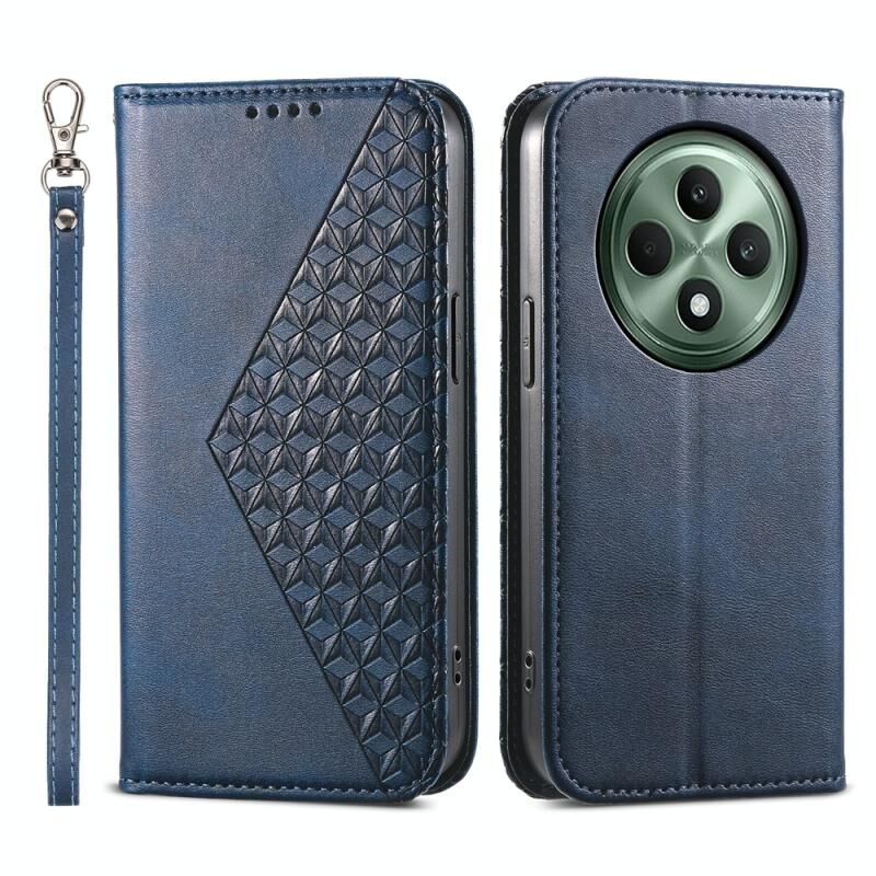Για OPPO Reno12 F 4G / 5G / F27 Ινδία Cubic Grid Calf Texture Μαγνητική δερμάτινη θήκη τηλεφώνου (Μπλε)