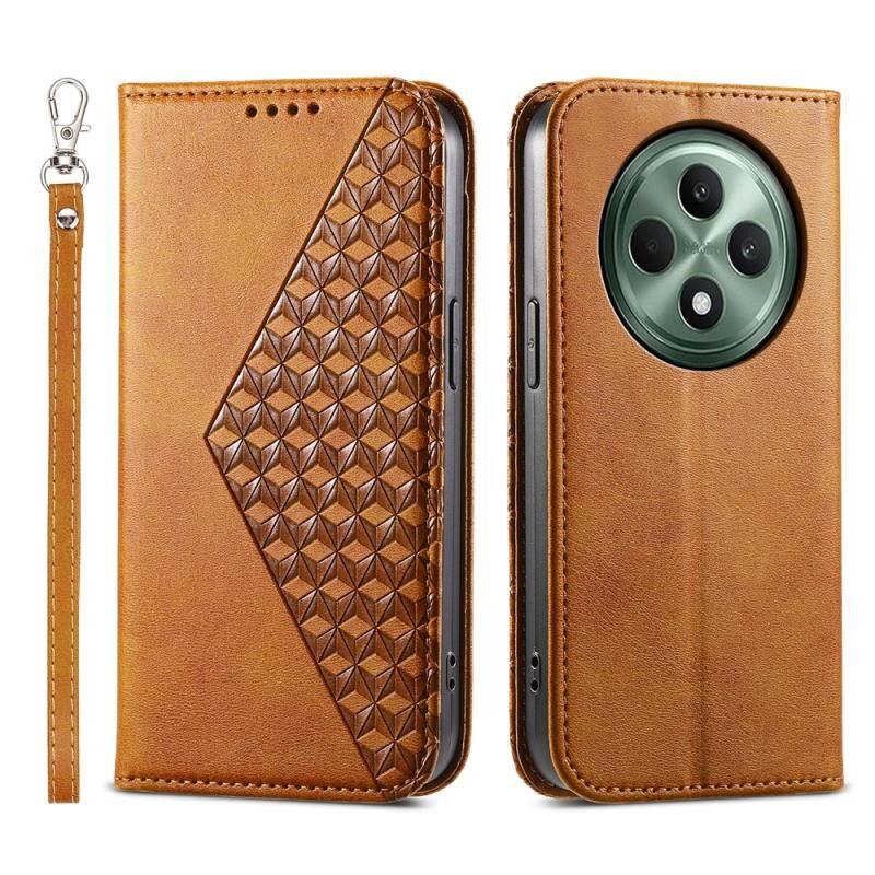 Για OPPO Reno12 F 4G / 5G / F27 Ινδία Cubic Grid Calf Texture Μαγνητική δερμάτινη θήκη τηλεφώνου (Κίτρινο)