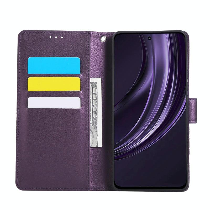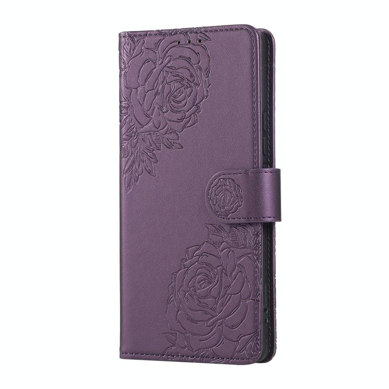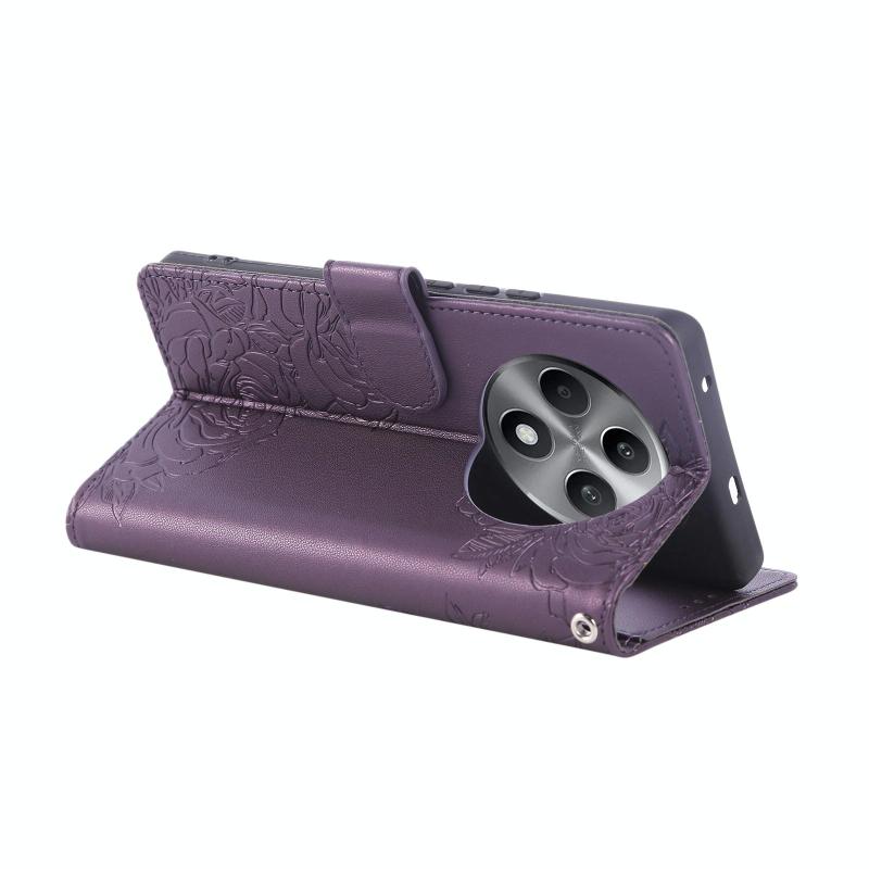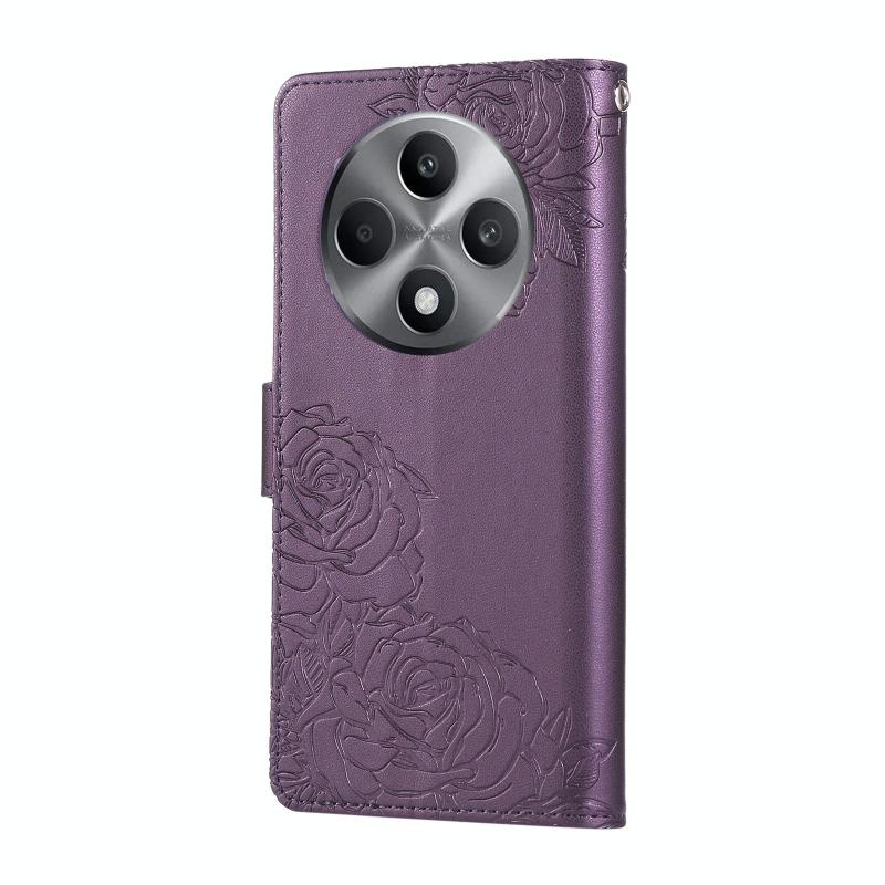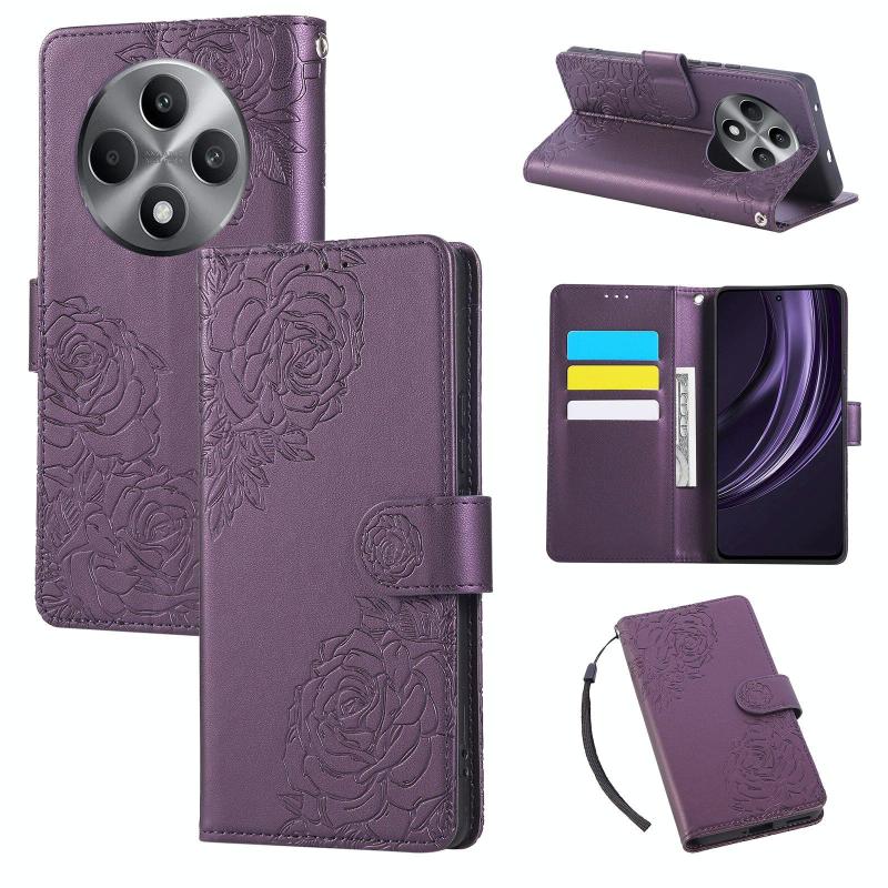 For OPPO Reno12 F 4G / 5G Rose Flower Embossed 3-Card Slots Leather Phone Case(Deep Purple)