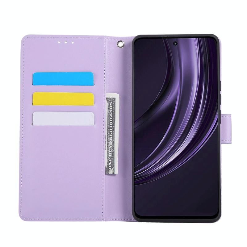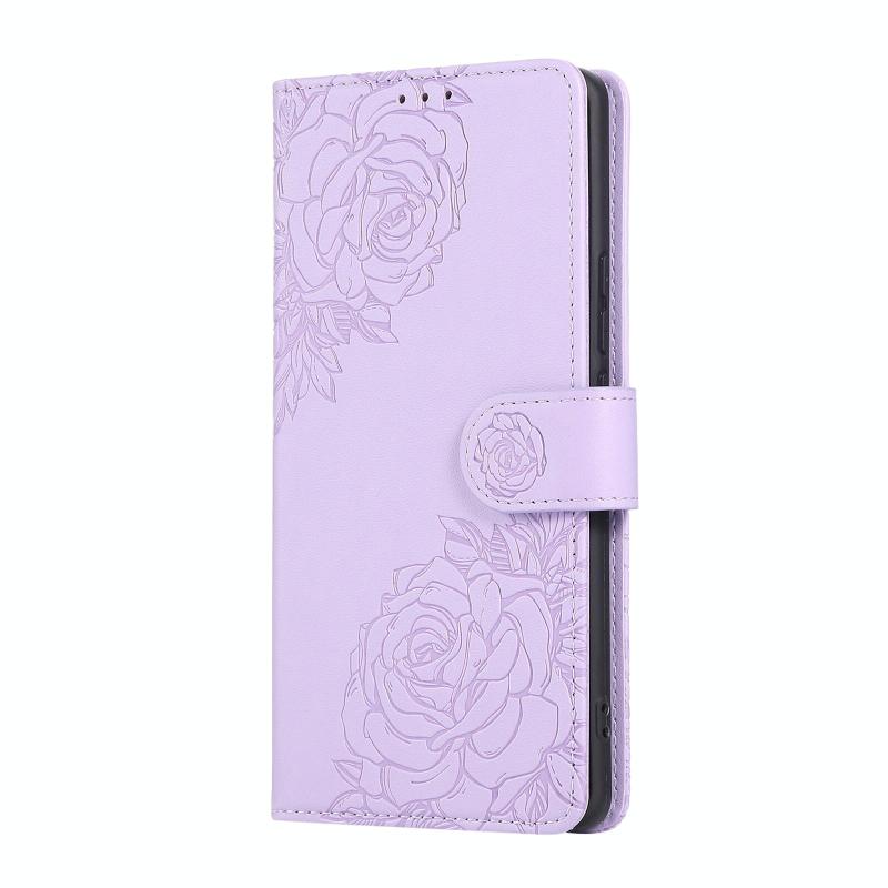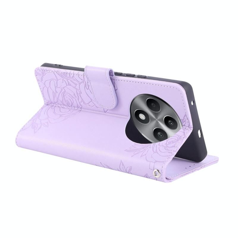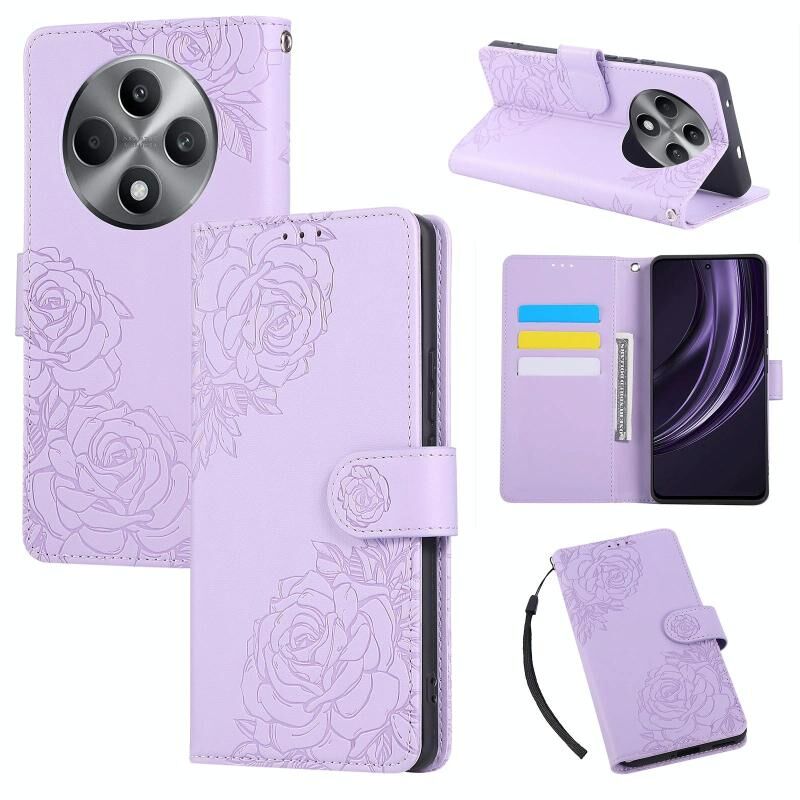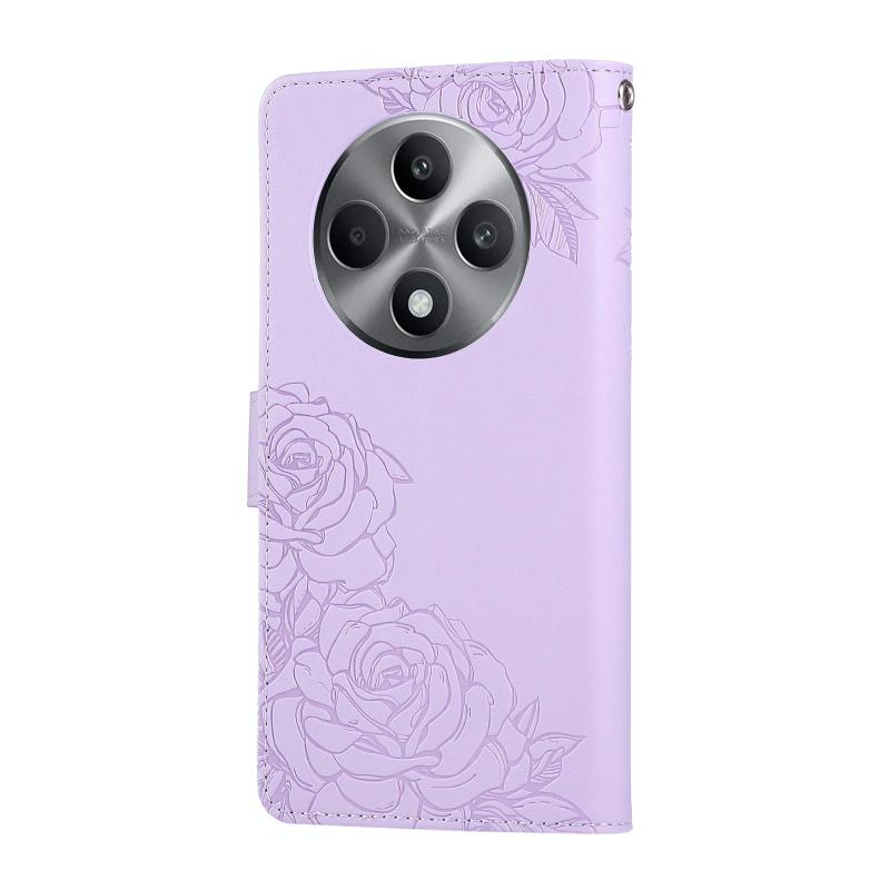 For OPPO Reno12 F 4G / 5G Rose Flower Embossed 3-Card Slots Leather Phone Case(Purple)