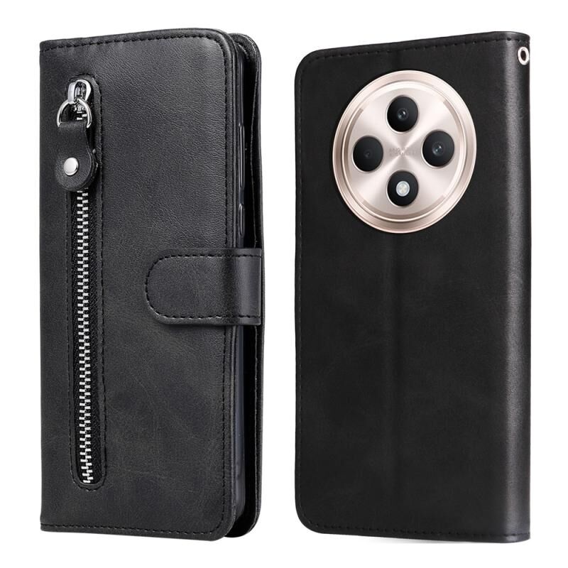 Για OPPO Reno12 F 4G Μόδα μοσχάρι υφή φερμουάρ δερμάτινη θήκη τηλεφώνου (Μαύρο)