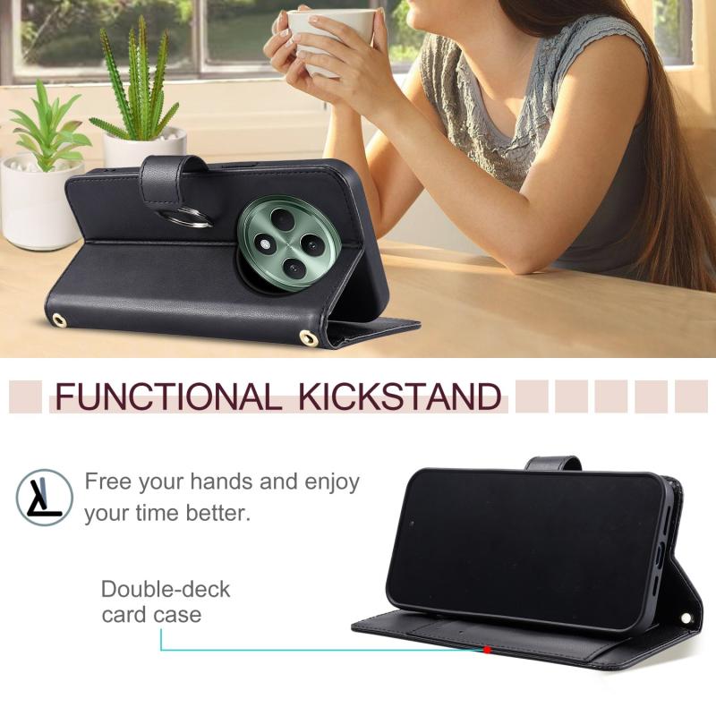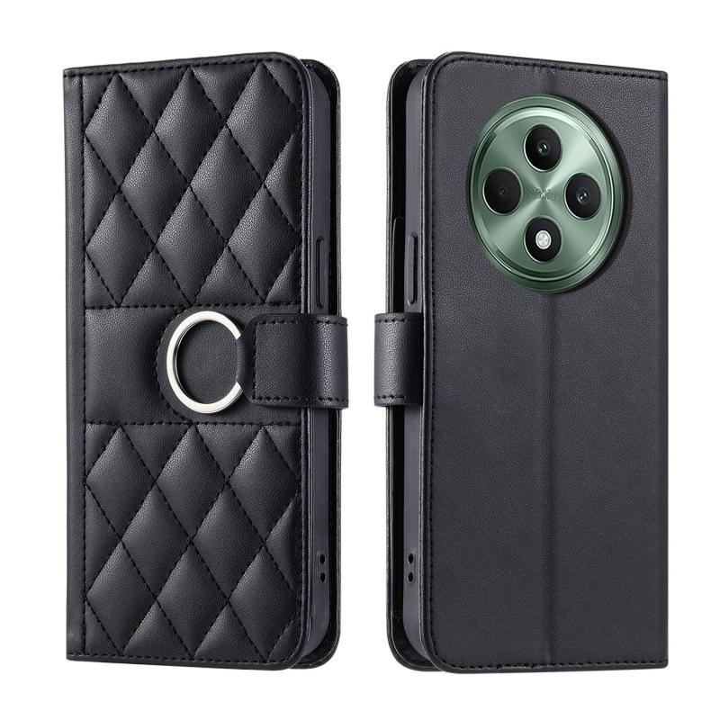 For OPPO Reno12 F 4G Global Ring Buckle Rhombic Leather Phone Case(Black)