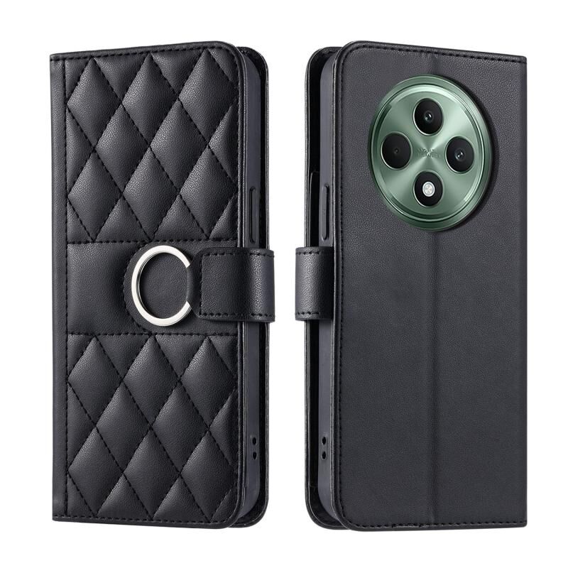 Θήκη τηλεφώνου OPPO Reno12 F 4G Global με Δακτύλιο και Δερμάτινη Υφή Ρομβοειδούς Σχήματος (Κόκκινη)