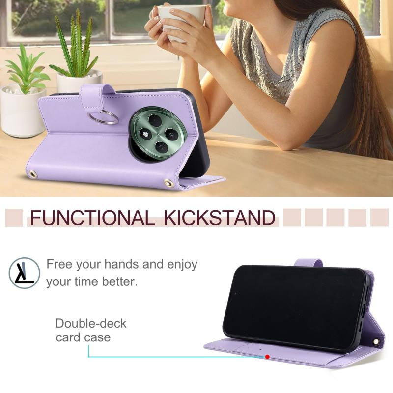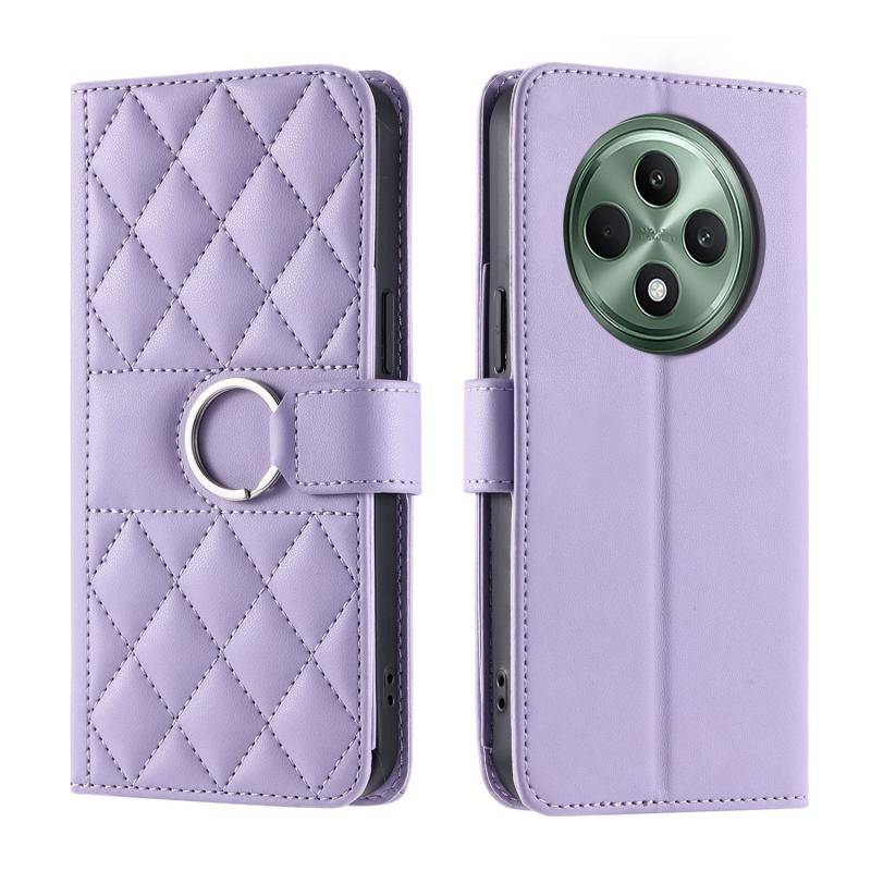 For OPPO Reno12 F 4G Global Ring Buckle Rhombic Leather Phone Case(Purple)