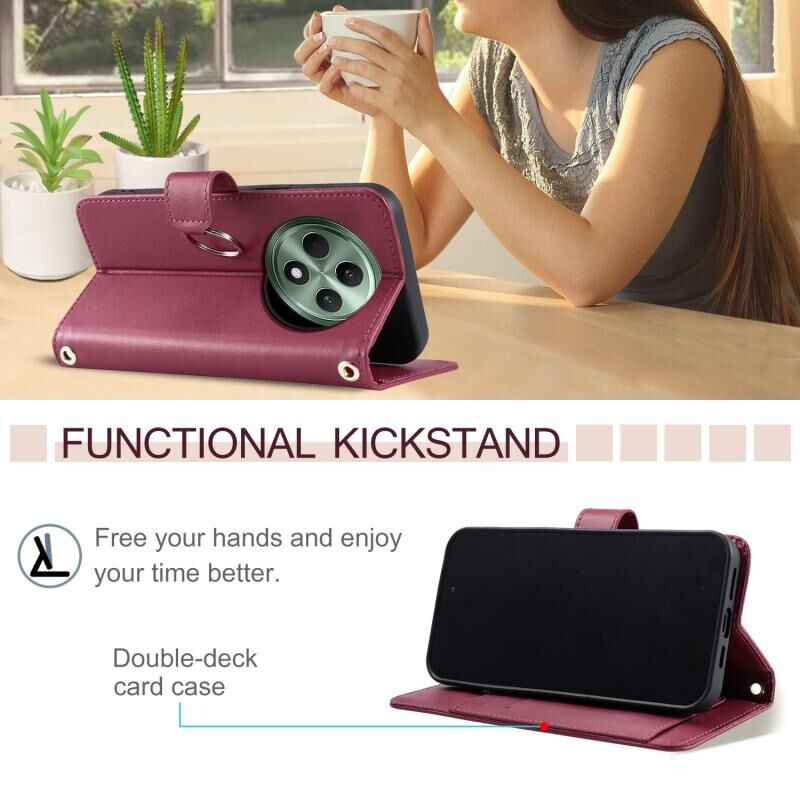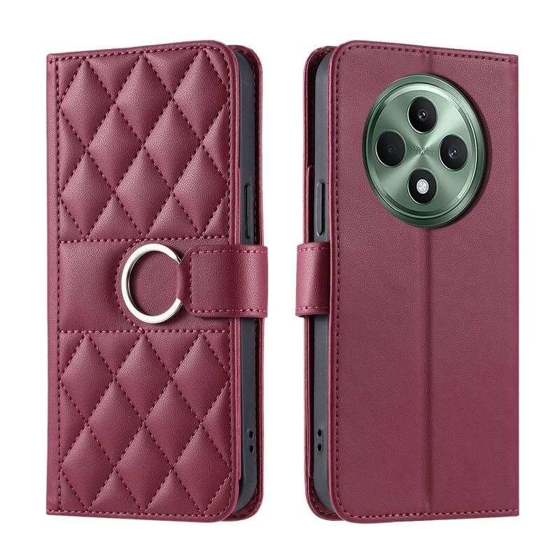 Θήκη τηλεφώνου OPPO Reno12 F 4G Global με Δακτύλιο και Δερμάτινη Υφή Ρομβοειδούς Σχήματος (Κόκκινη)