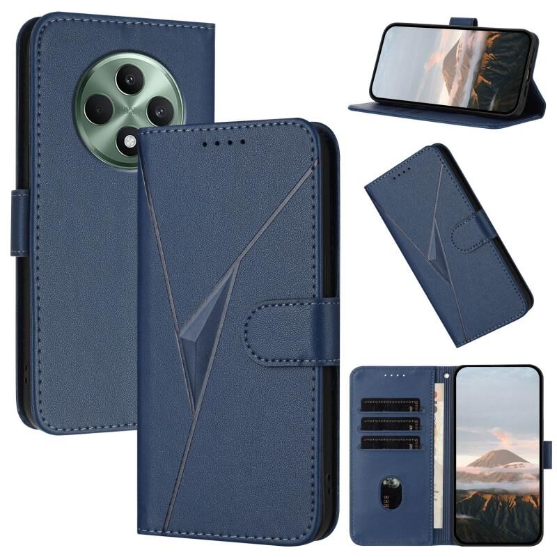 Θήκη τηλεφώνου από δέρμα με σχέδιο τριγώνου και μαγνητικό κούμπωμα για OPPO Reno12 F 4G (Σκούρο Μωβ)