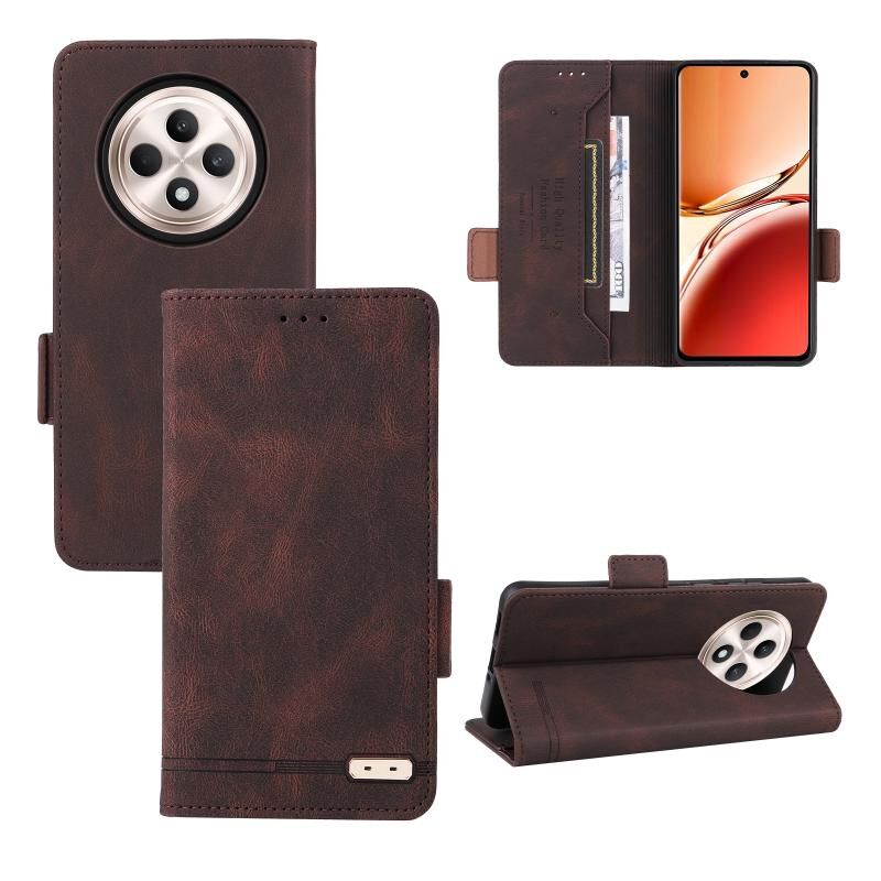 Για OPPO Reno12 F 5G / 4G μαγνητικό κούμπωμα Δερμάτινη θήκη τηλεφώνου (καφέ)