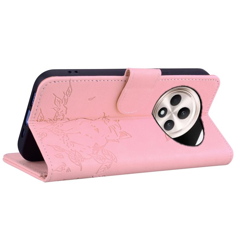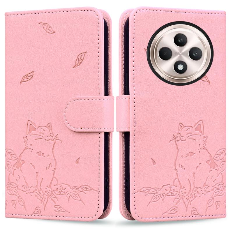 For OPPO Reno12 F 5G Cute Cat Embossed Leather Phone Case(Pink)
