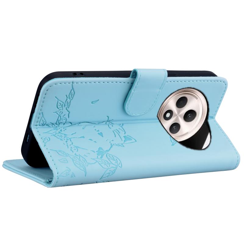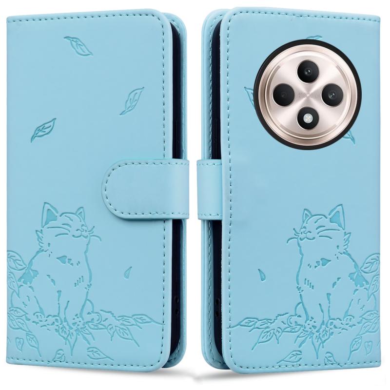 For OPPO Reno12 F 5G Cute Cat Embossed Leather Phone Case(Sky Blue)