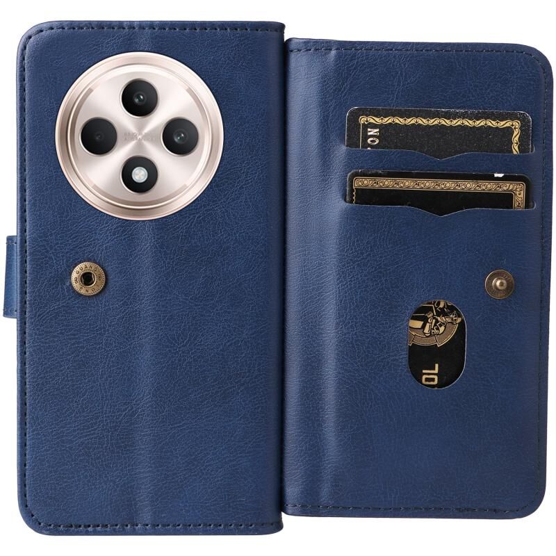 Για OPPO Reno12 F 5G Global Πολυλειτουργικό πορτοφόλι 10 υποδοχές καρτών Δερμάτινη θήκη τηλεφώνου (Σκούρο μπλε)