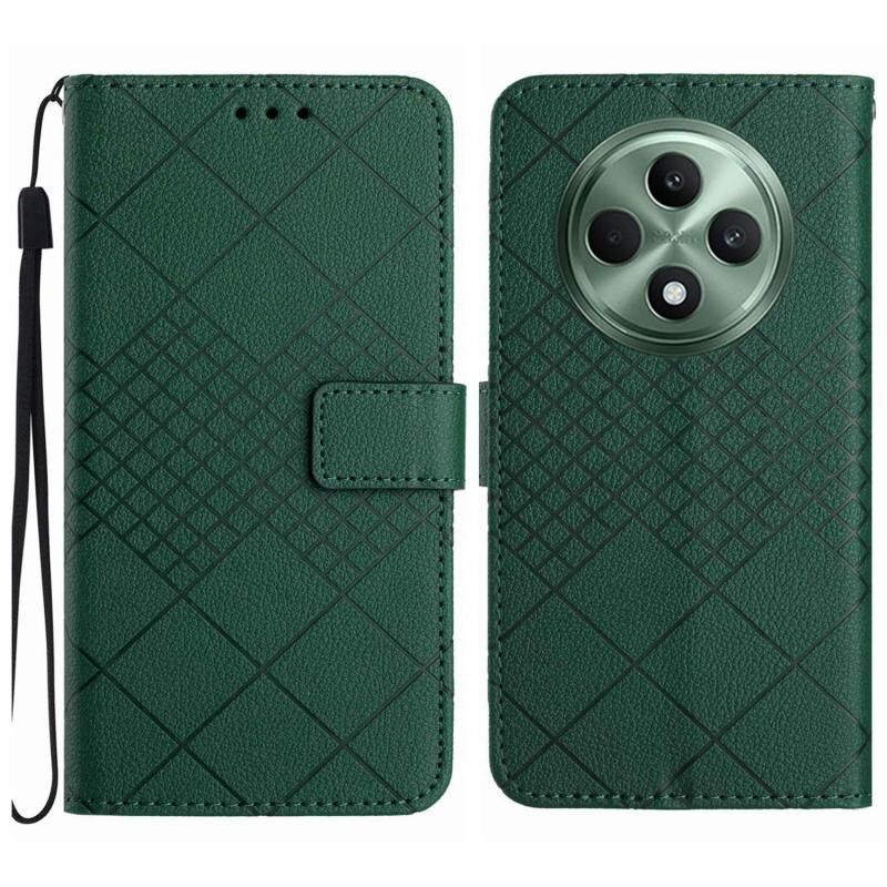 Για OPPO Reno12 F 5G Global Rhombic Grid Υφή δερμάτινη θήκη τηλεφώνου (πράσινο)