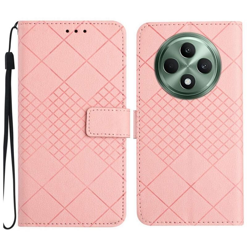 Για OPPO Reno12 F 5G Global Rhombic Grid Υφή δερμάτινη θήκη τηλεφώνου (ροζ)