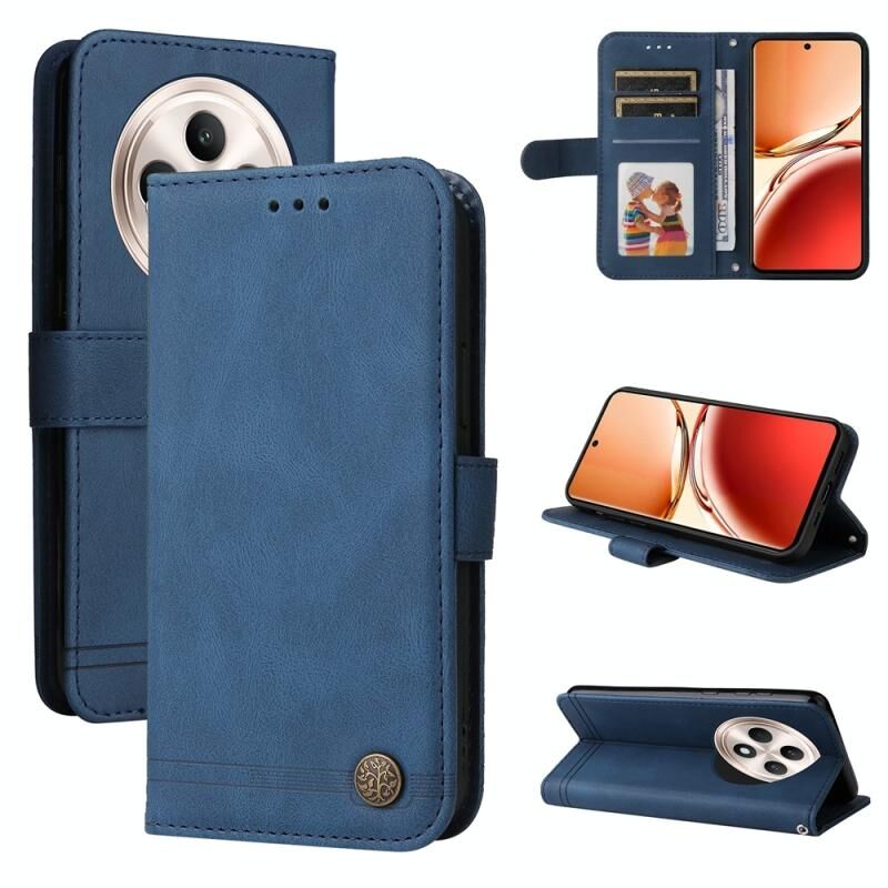Για OPPO Reno12 F 5G Global Skin Feel Life Tree Metal Button Leather Phone Case (μπλε)