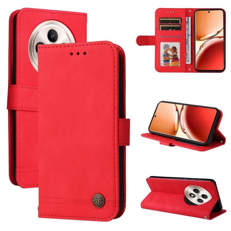 Για OPPO Reno12 F 5G Global Skin Feel Life Tree Metal Button Leather Phone Case (κόκκινο)