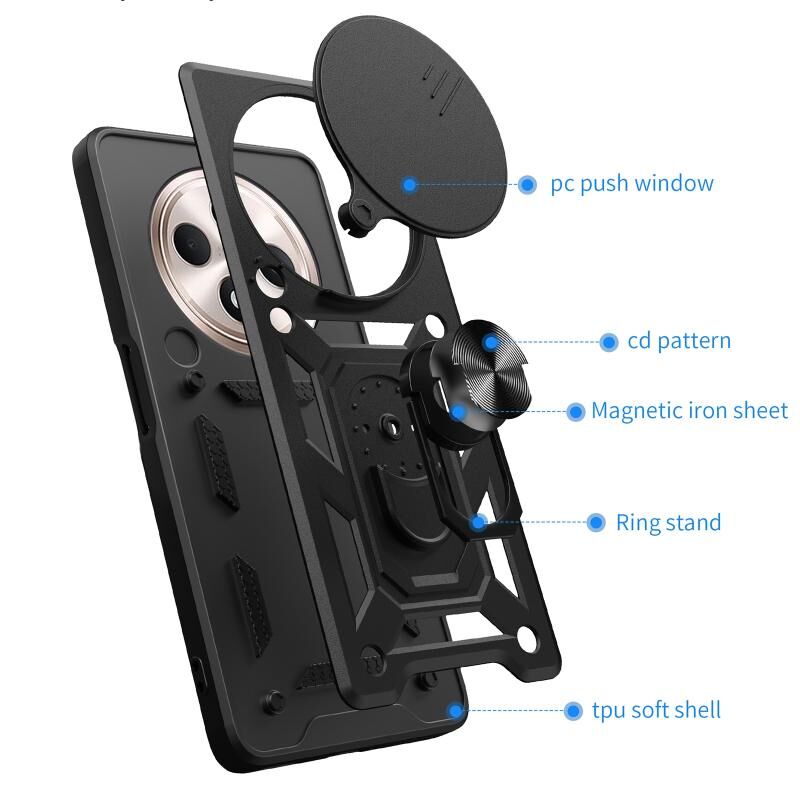 Θήκη τηλεφώνου για OPPO Reno12 F 5G Global, Υβριδική TPU/PC με σχεδιασμό ολισθαίνουσας κάμερας (Μαύρο)