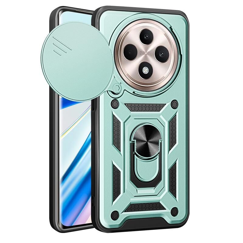 Θήκη τηλεφώνου για OPPO Reno12 F 5G Global, Υβριδική TPU/PC με σχεδιασμό ολισθαίνουσας κάμερας (Μέντας πράσινο)