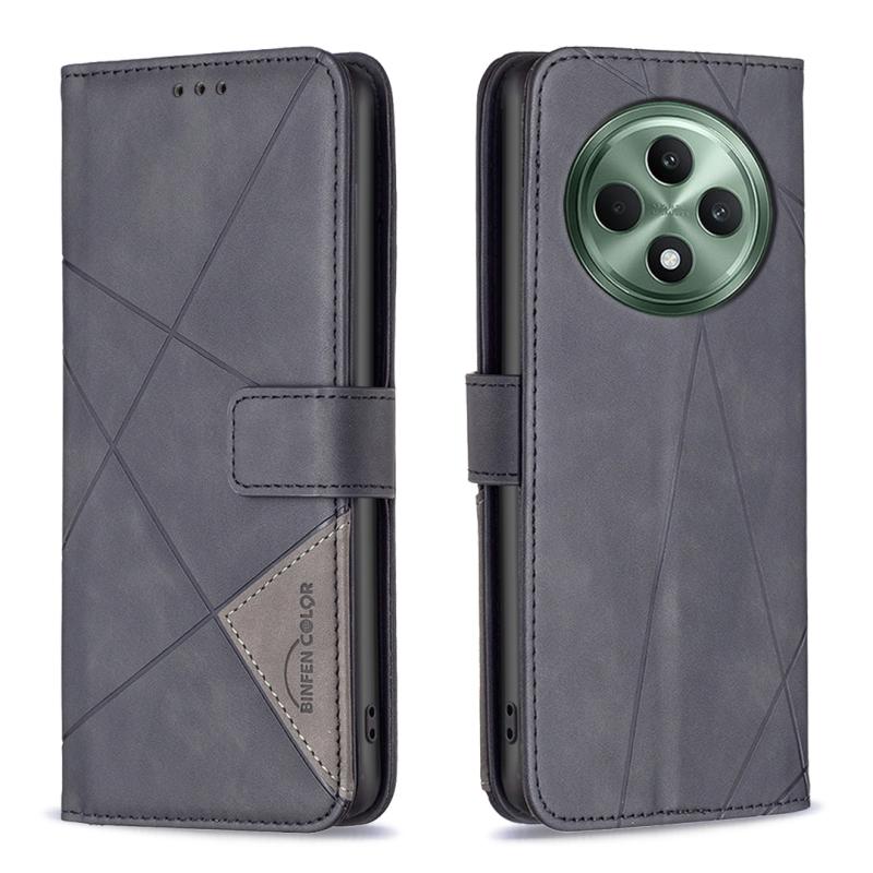 For OPPO Reno12 F 5G Magnetic Buckle Rhombus Texture Leather Phone Case(Black)
