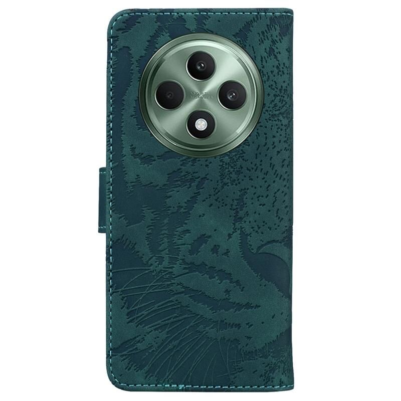 Θήκη τηλεφώνου από δέρμα με σχέδιο ανάγλυφου τίγρη για OPPO Reno12 F 5G (Μαύρο)