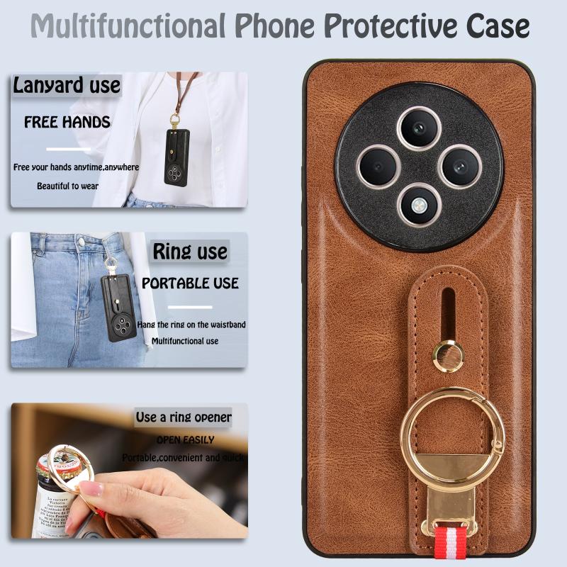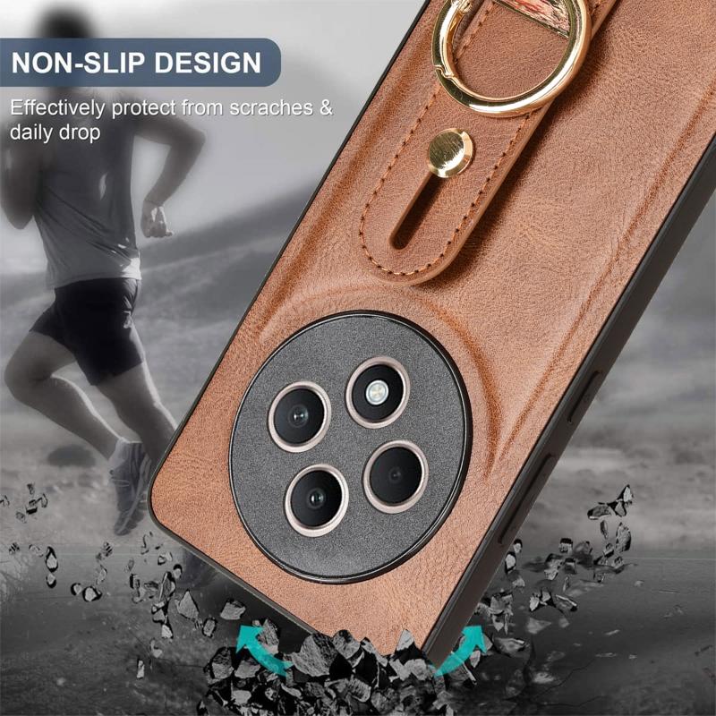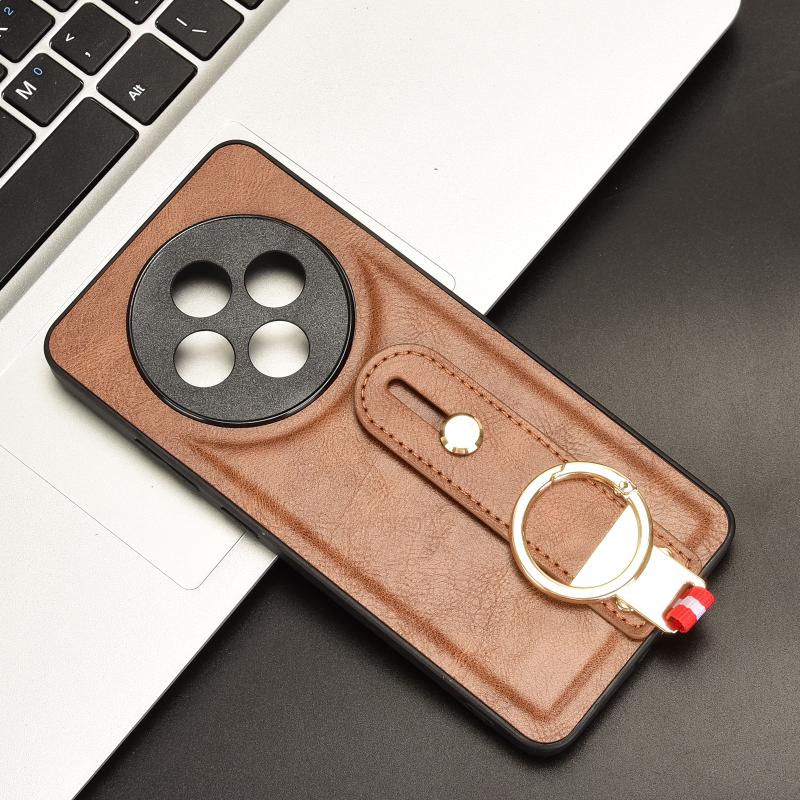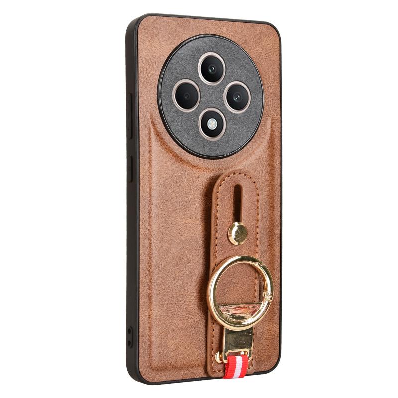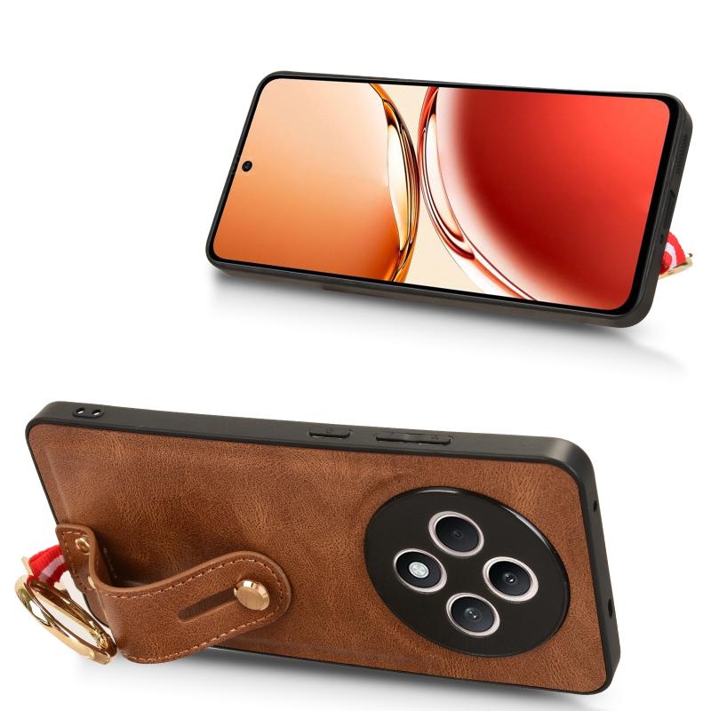 For OPPO Reno12 F 5G Wristband Leather Back Phone Case(Brown)