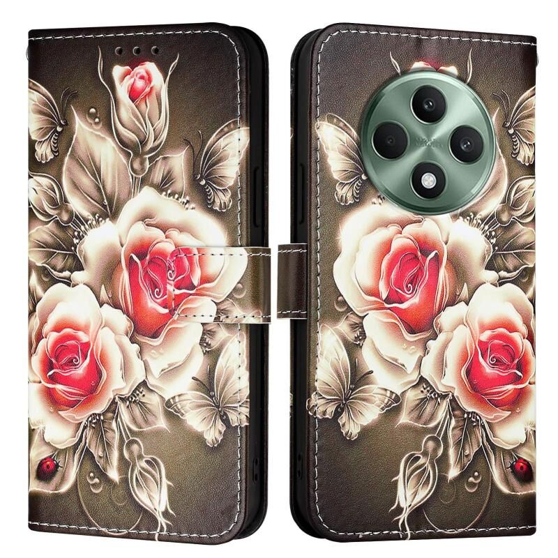 Θήκη τηλεφώνου από δέρμα με απλή ύφανση και πολύχρωμο σχέδιο για OPPO Reno12 F Global (Τριαντάφυλλα σε μαύρο)