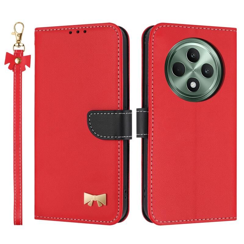 Θήκη τηλεφώνου OPPO Reno12 F Global από μέταλλο και δέρμα με λουρί χειρός (Κόκκινο)